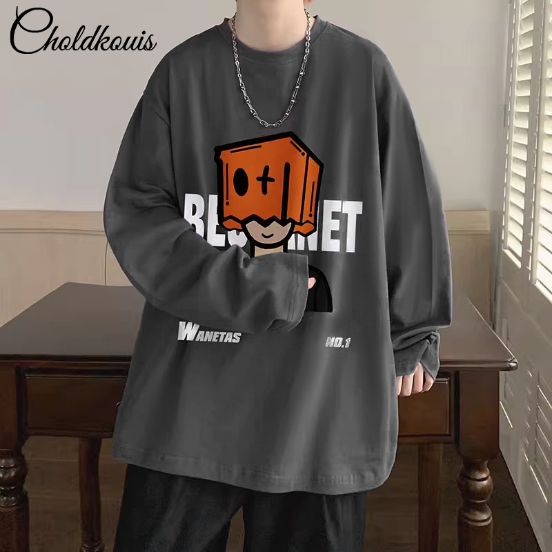 長袖tシャツ男2024春秋の新型ゆるい重ポンド純綿青少年丸襟プルオーバー