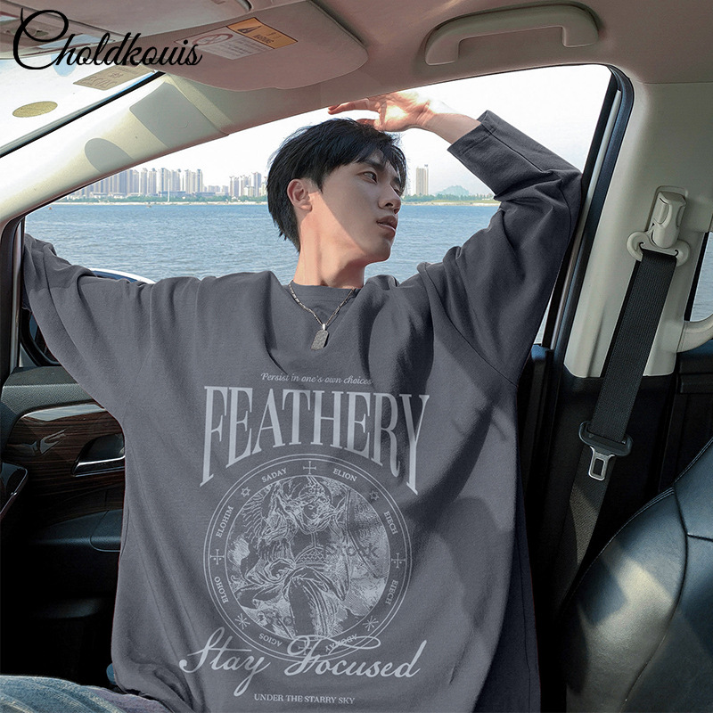 重いポンドのtシャツの長袖の男性の冬の中は上着のゆったりしている純綿を掛けて秋冬の白い底のシャツの服をtシャツします。