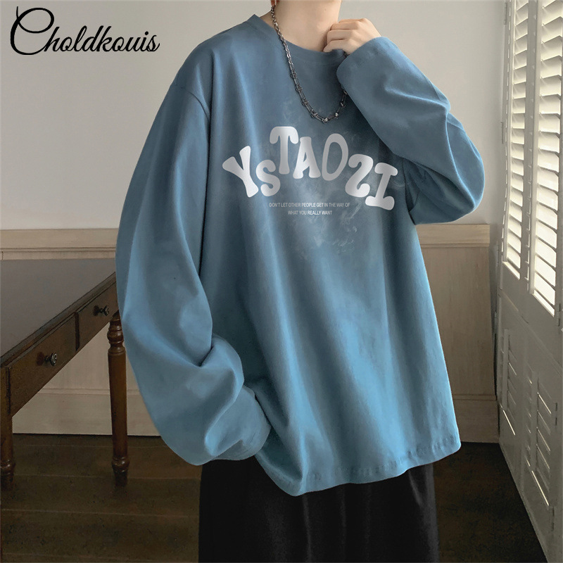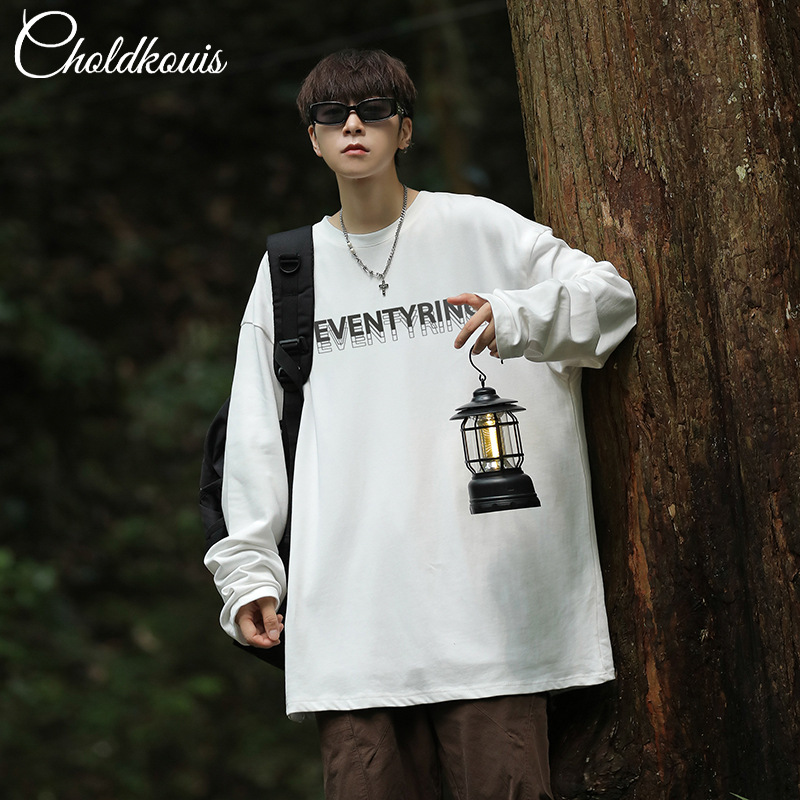 春秋200g重ポンド精櫛綿長袖tシャツ男性ファッションブランドのプリントがゆったりしています。