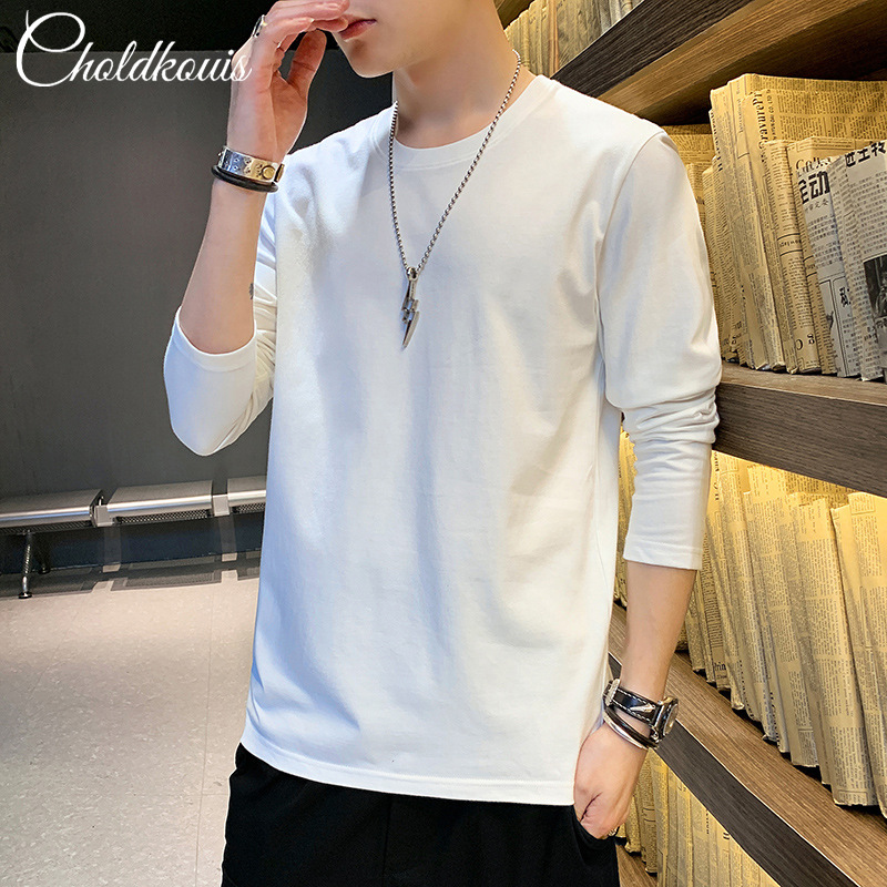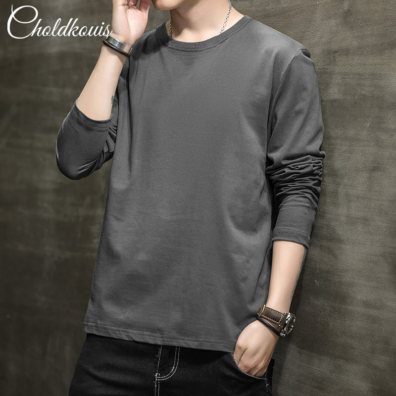 純綿の長袖tシャツの男性の春と秋のの新型のゆったりした底のシャツの秋冬の純色の男性