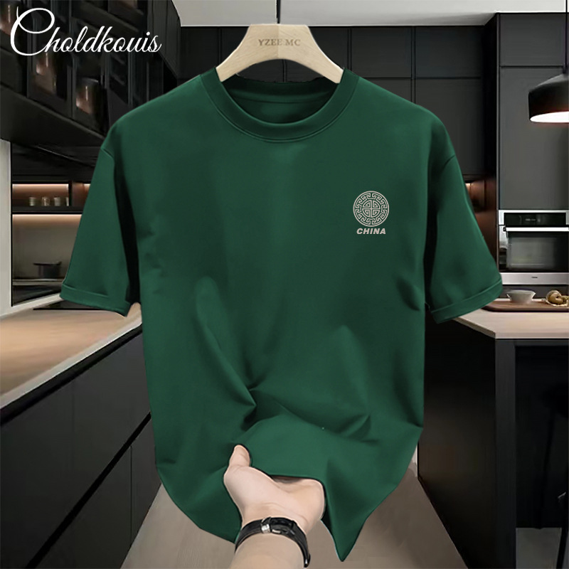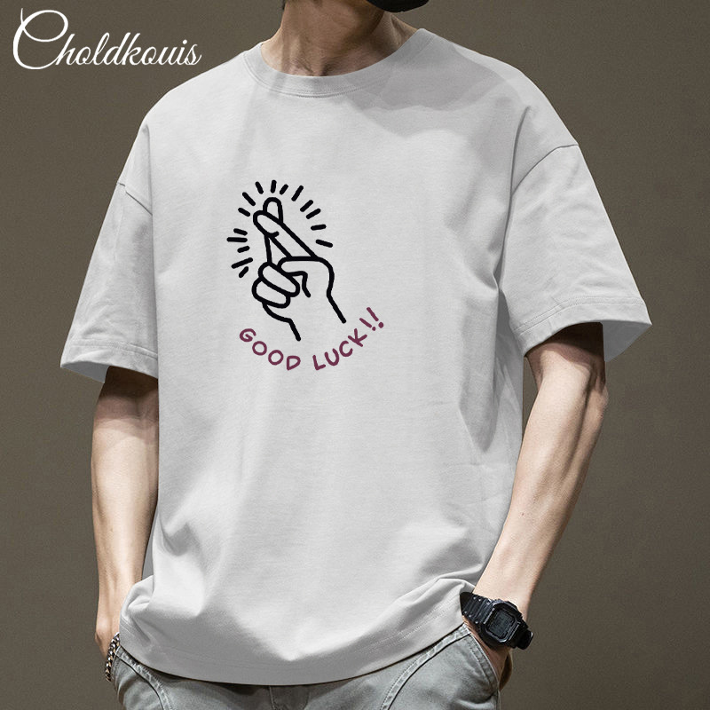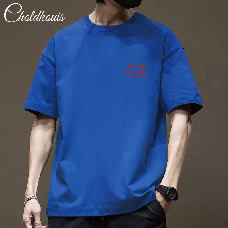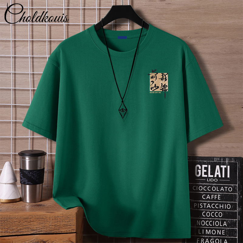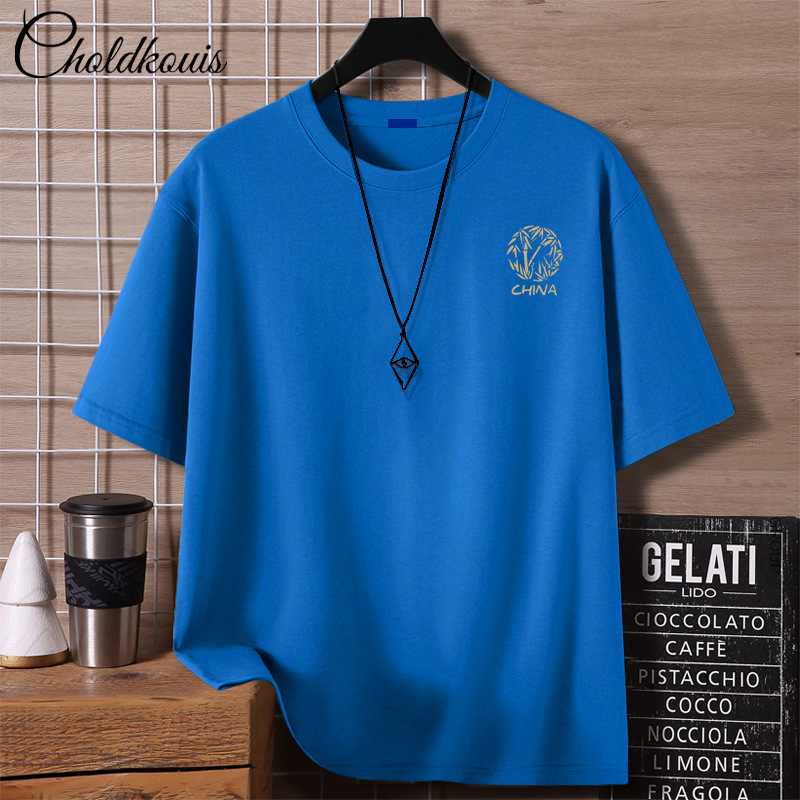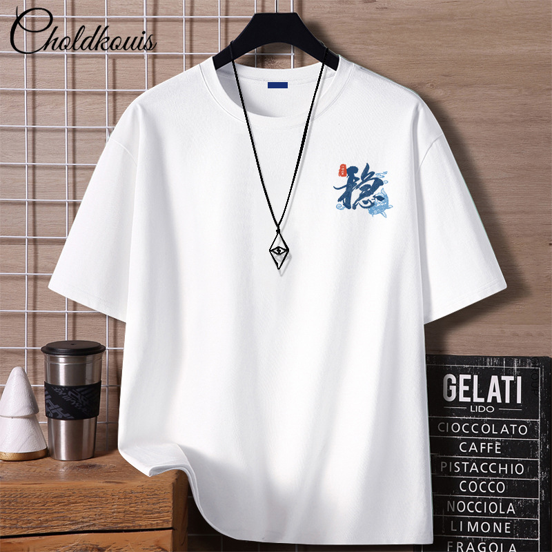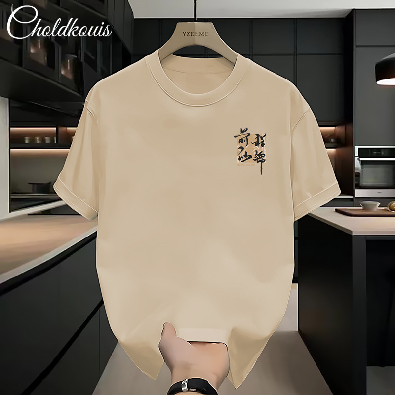 重いポンドの半袖のtシャツの男性の夏の薄い金のゆったりした丸首のファッションのブランドのカジュアルなプリントの純綿のtシャツ