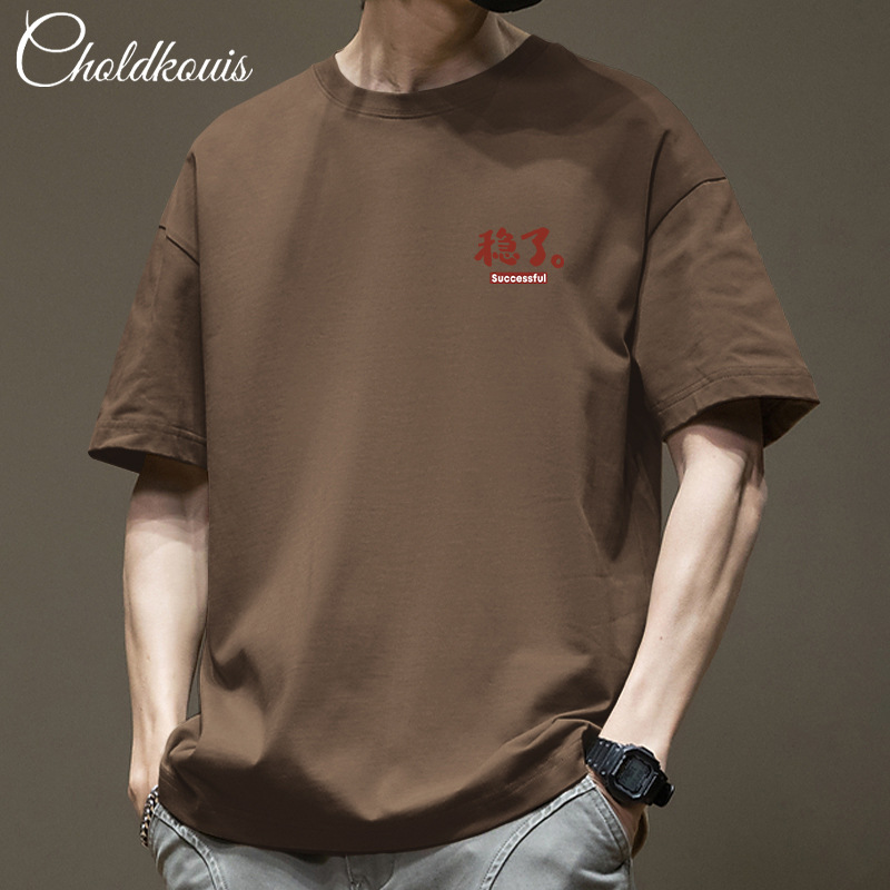 香港風日系レトロ高街重ポンド純綿半袖tシャツ男夏ゆるいinsファッション格好いい