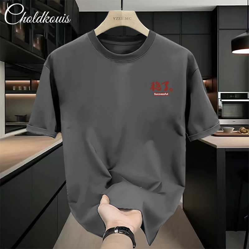 重いポンドの底のtシャツの男性の夏の成熟したinsの潮流のかっこいい丸首のゆったりしているカジュアルな上着の男性の半袖のtシャツ