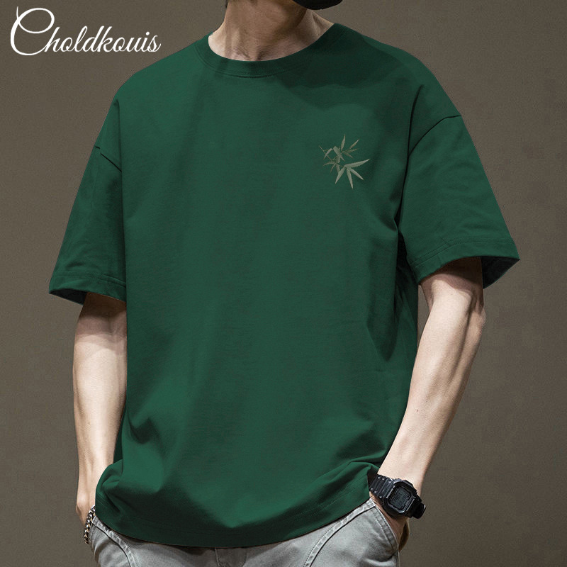 重いポンドの純綿の半袖のtシャツの男性の新型の純色はゆったりしています。