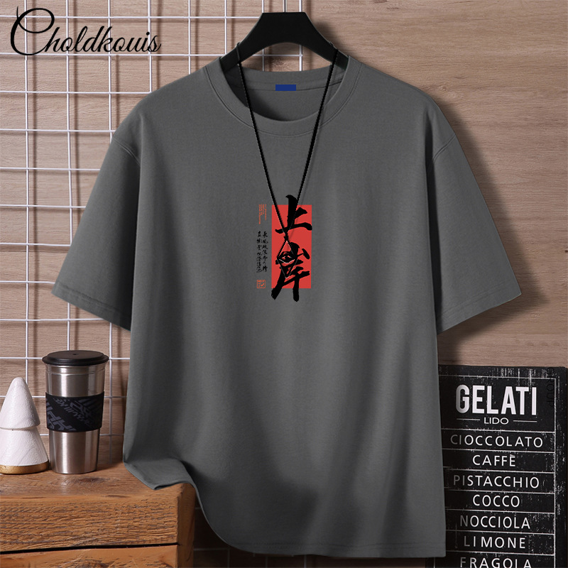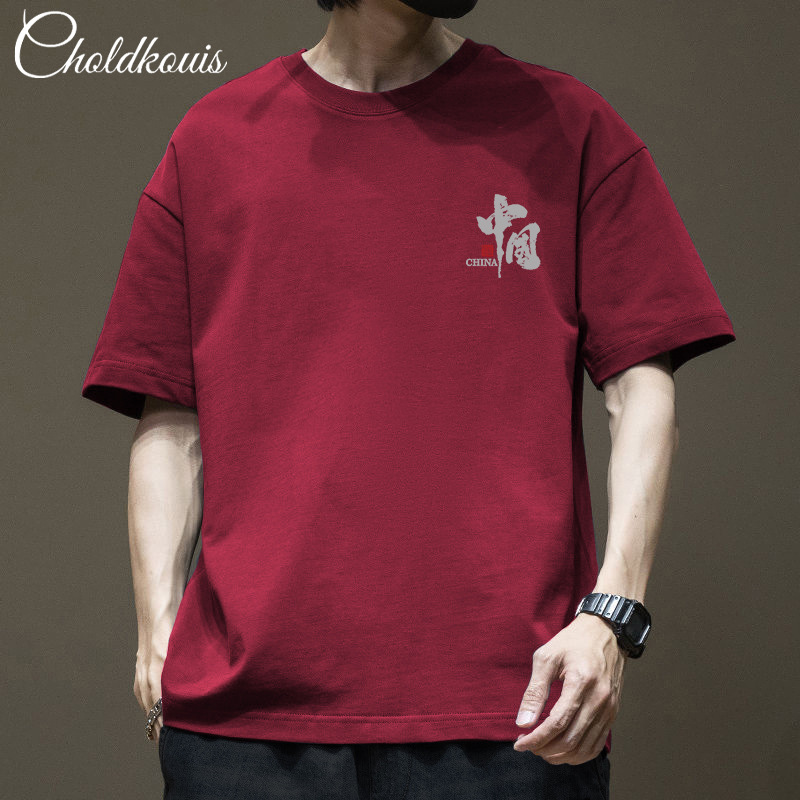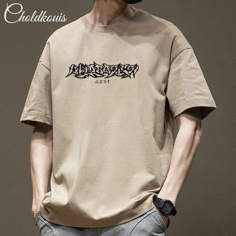 重いポンドの純綿のゆったりしたtシャツの男性のプリントの丸首のファッションのブランドのins半袖のtシャツの男性の韓国版のファッションの半袖の男性のファッション