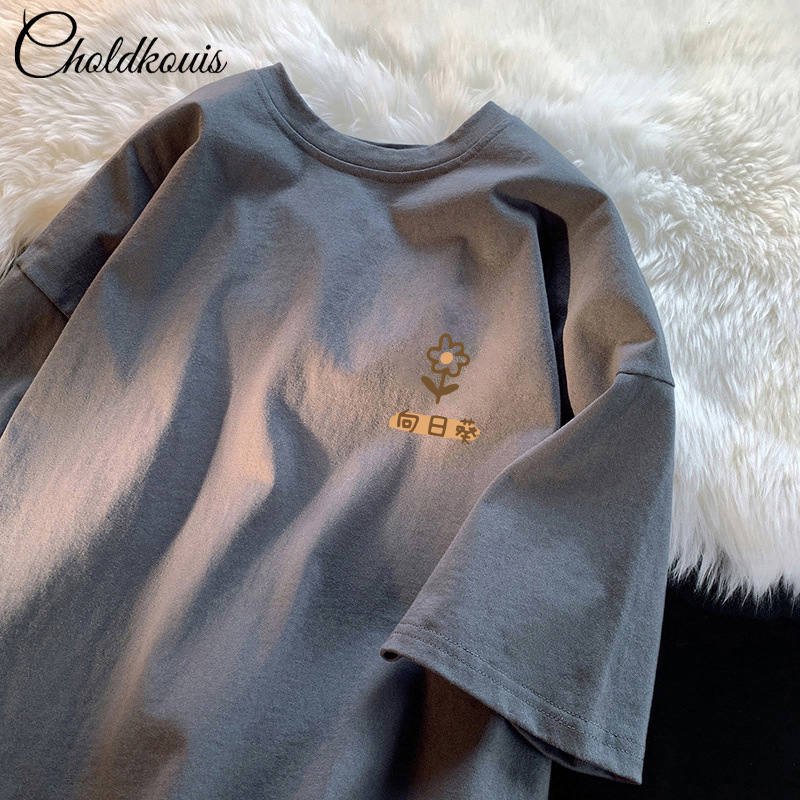半袖tシャツ男性ゆるいカップル服ins潮牌純綿半袖上着tシャツ丸襟男性プリント