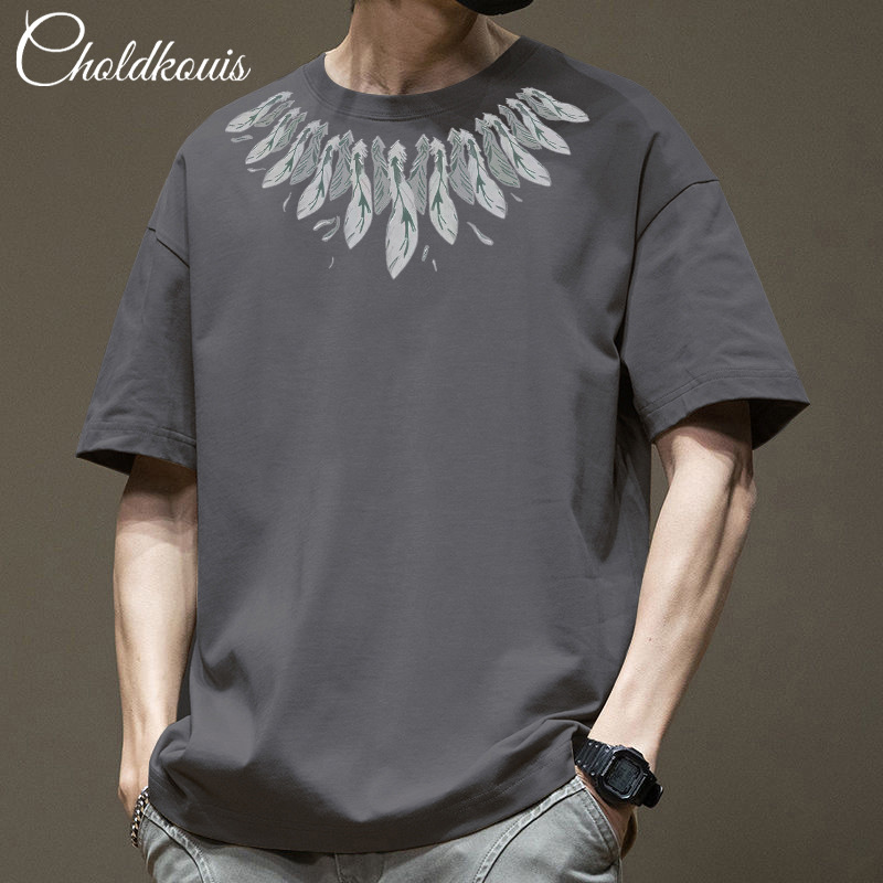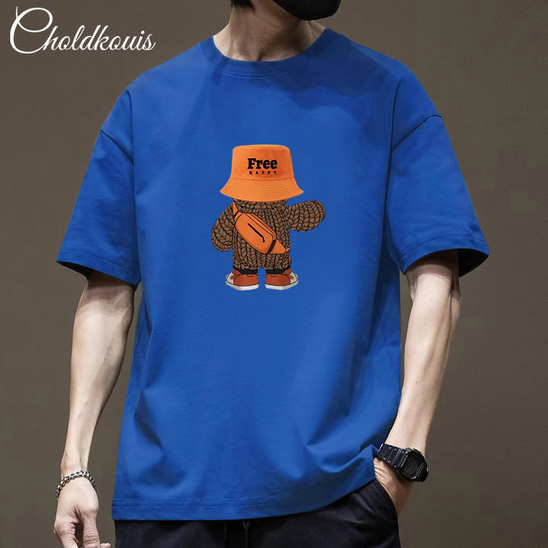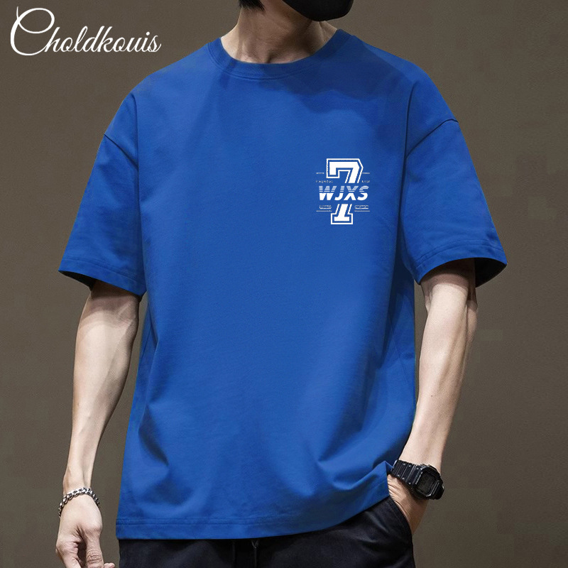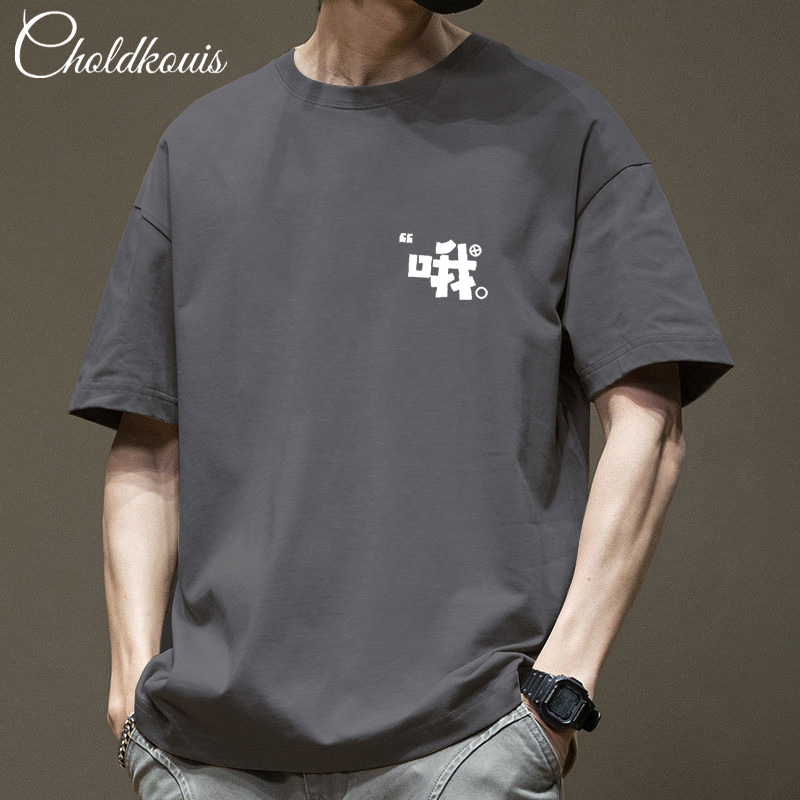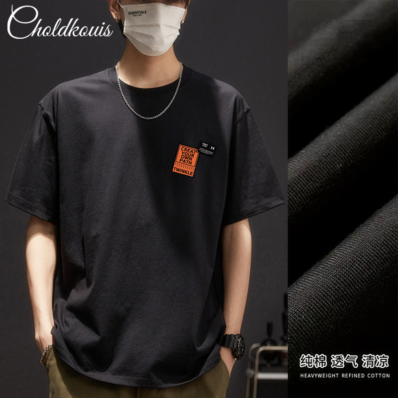潮牌重ポンド純綿半袖tシャツ男性夏の新ファッションゆるい半袖男性用丸襟上着