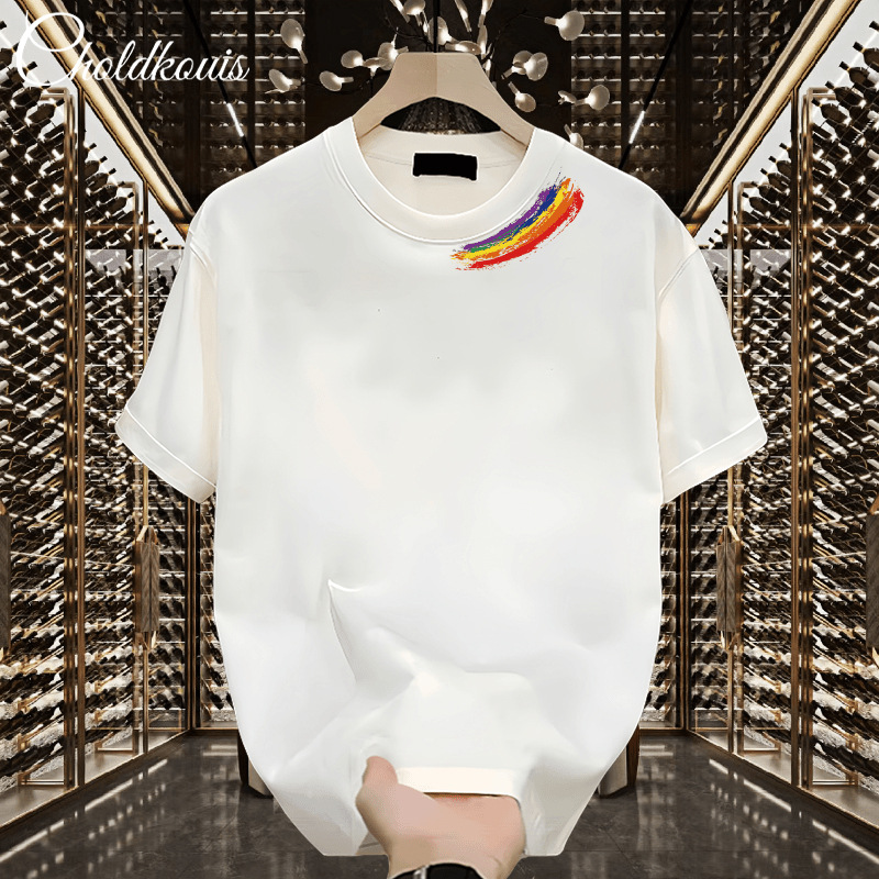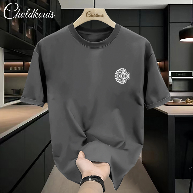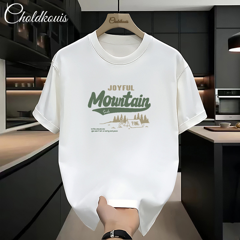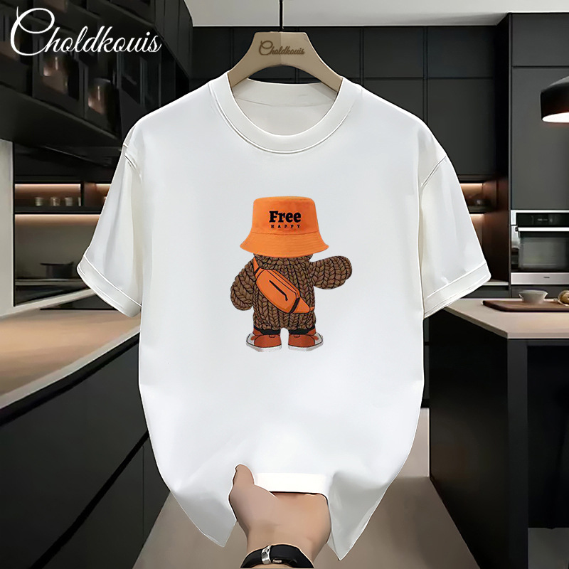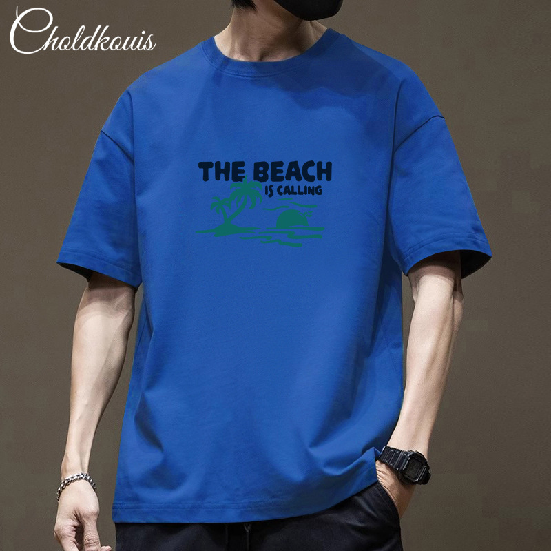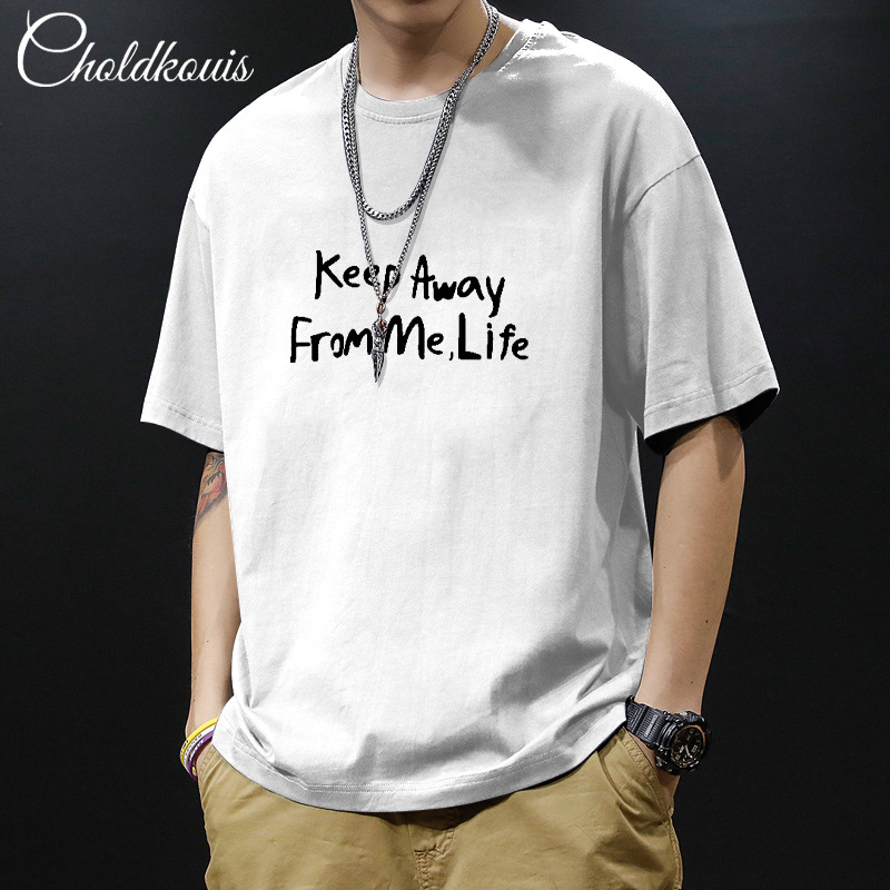 潮牌重ポンド純綿半袖tシャツ男性夏の新ファッションゆるい半袖男性用丸襟上着