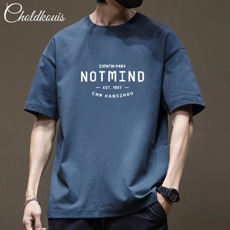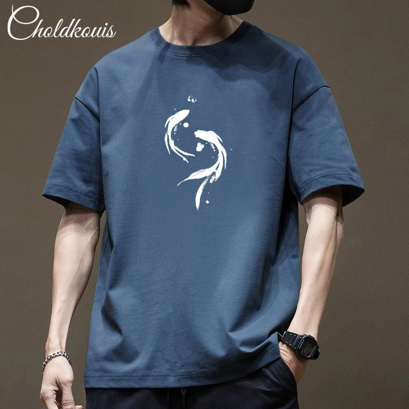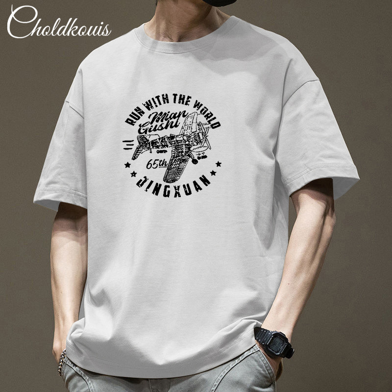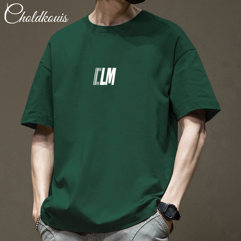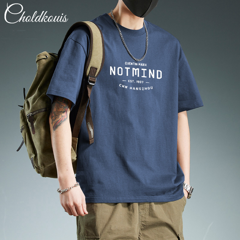潮牌重ポンド純綿半袖tシャツ男性夏の新ファッションゆるい半袖男性用丸襟上着