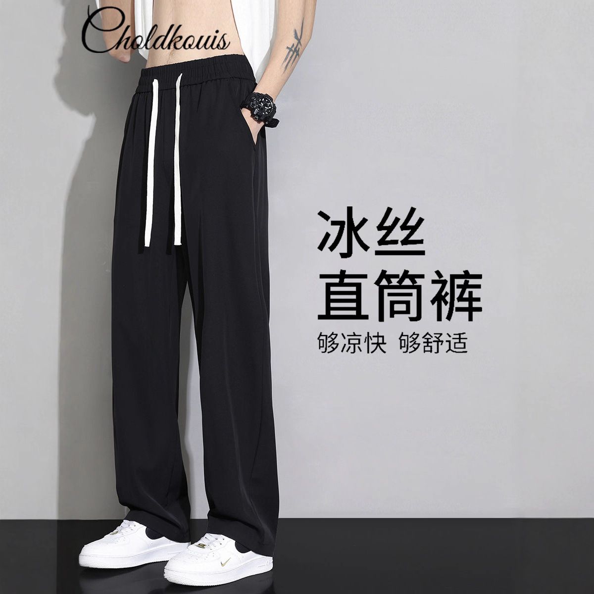 アイスシルクカジュアルロングパンツメンズ新作夏薄手ワークストレートルーズサマーウェア春秋スタイル