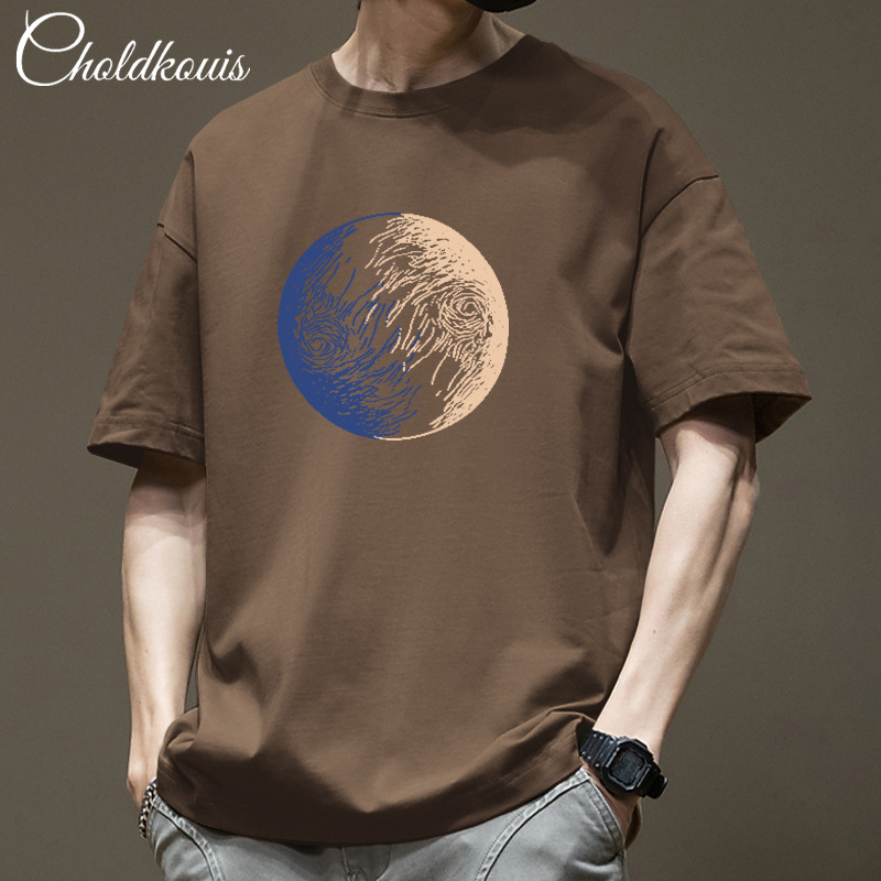 純綿tシャツファッションメンズ半袖春夏プリントゆるい男性ファッションブランドシンプル上服メンズ
