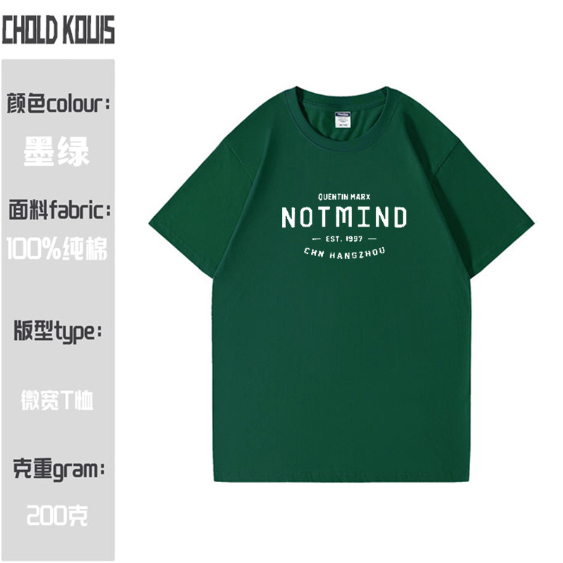 200g純綿夏丸首半袖tシャツ男性潮牌アルファベットプリントカジュアル