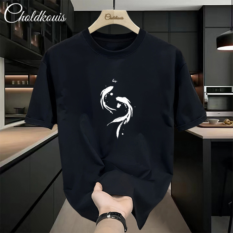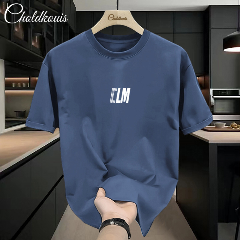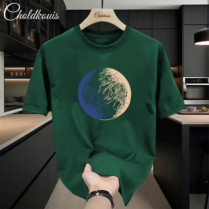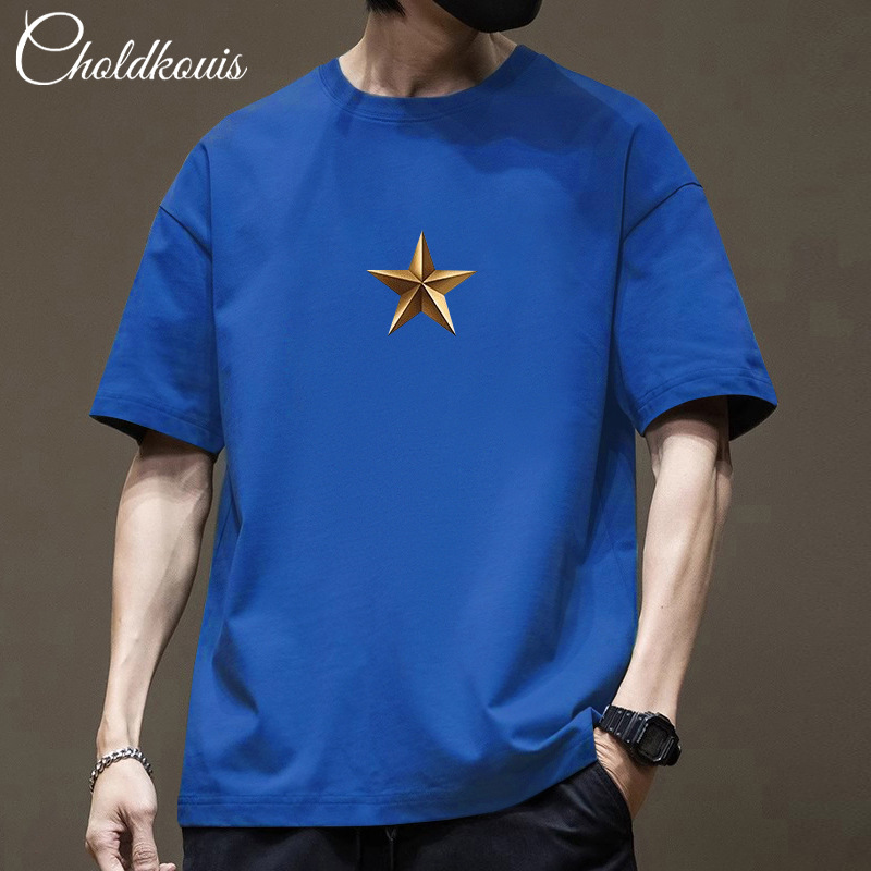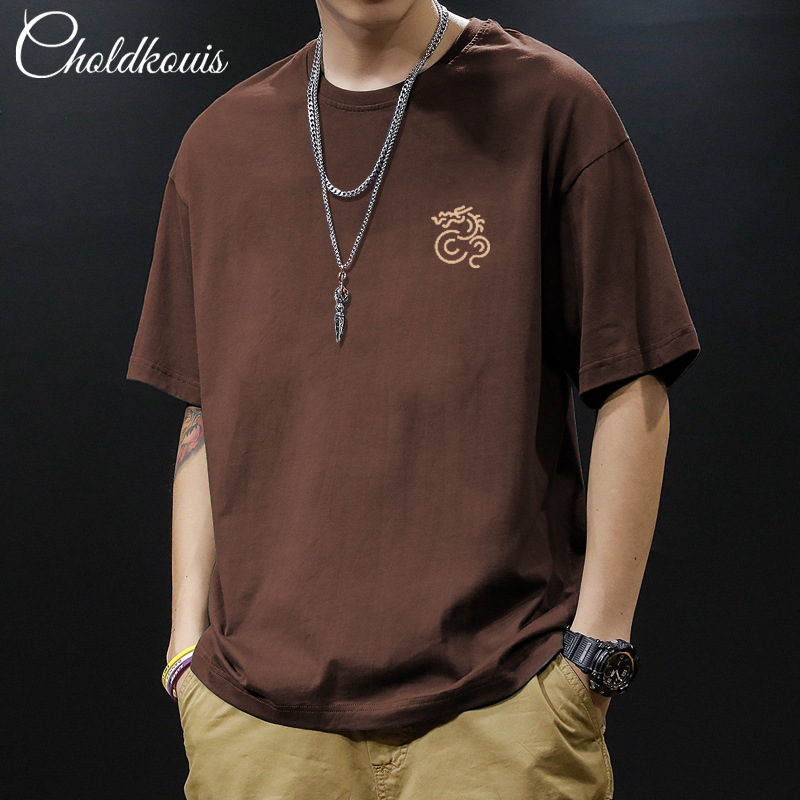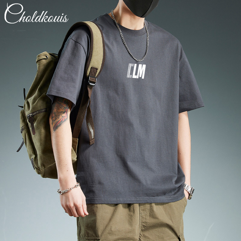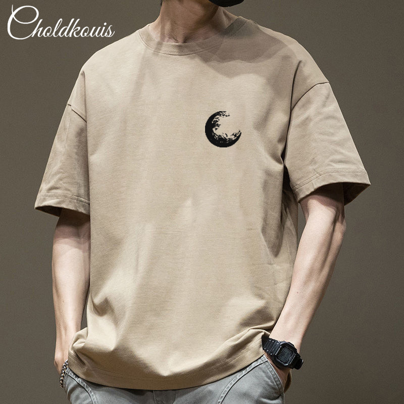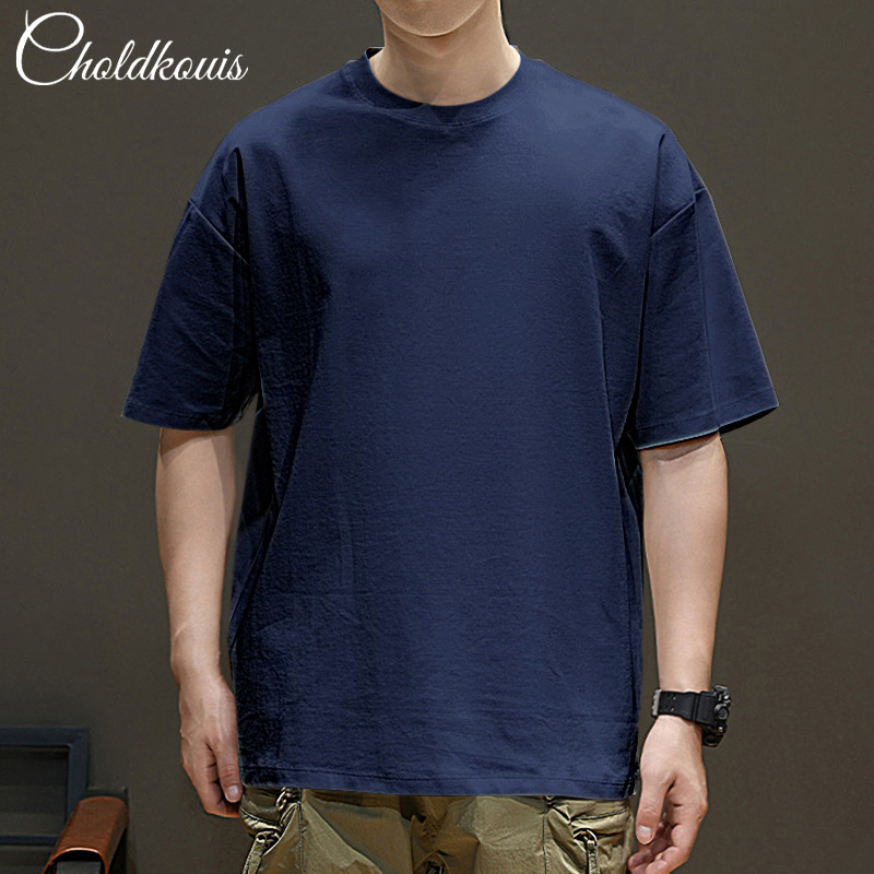 潮牌重ポンド純綿半袖tシャツ男性夏の新ファッションゆるい半袖男性用丸襟上着