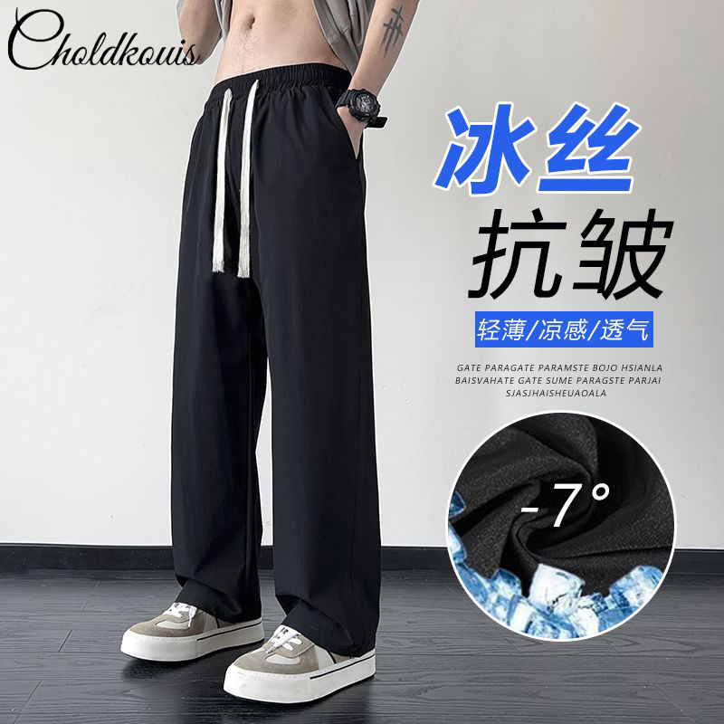 氷のズボンの男性の夏の薄いタイプのカジュアルなズボンの男性の潮のブランドのゆったりしている束の足の衛のズボンの速乾のスポーツのズボン