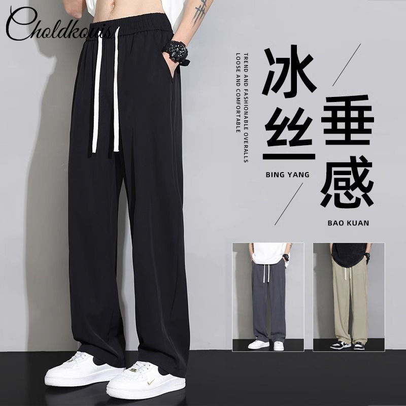 アイスシルクカジュアルパンツ メンズ 夏 薄手 速乾 スポーツ ゆったり レギンス風 メンズロングパンツ ドレープ感