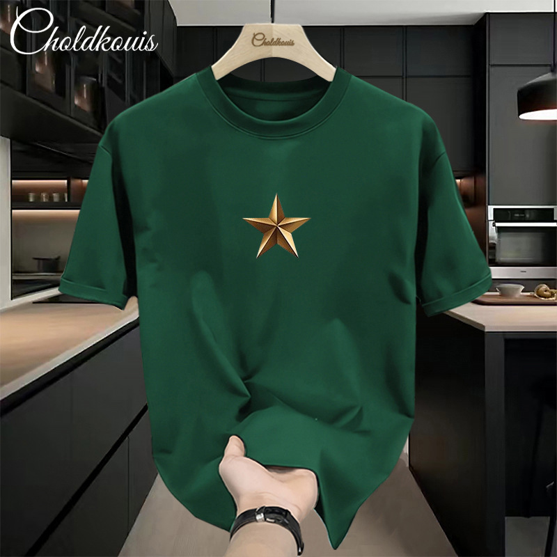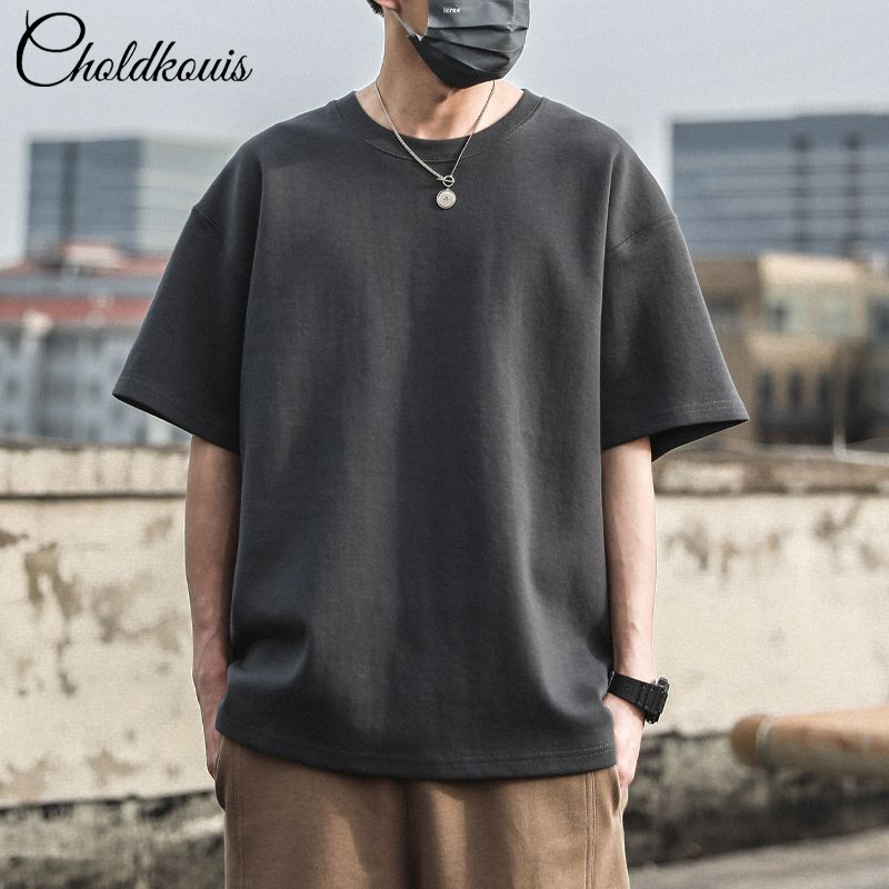メンズ重ポンドtシャツ男性純綿半袖夏丸襟アメリカ新作ファッション高級半袖ゆったり