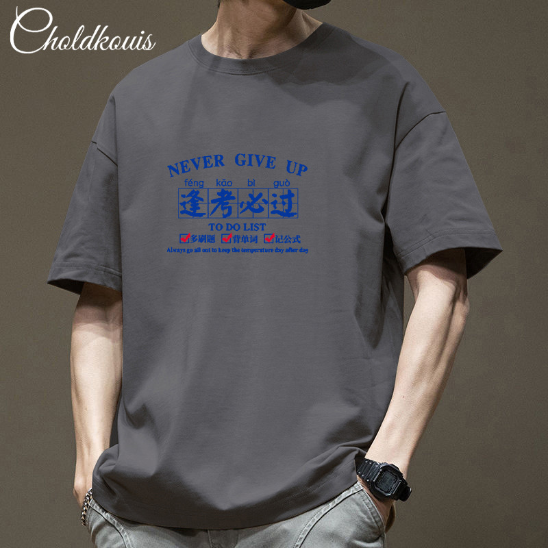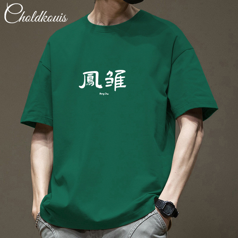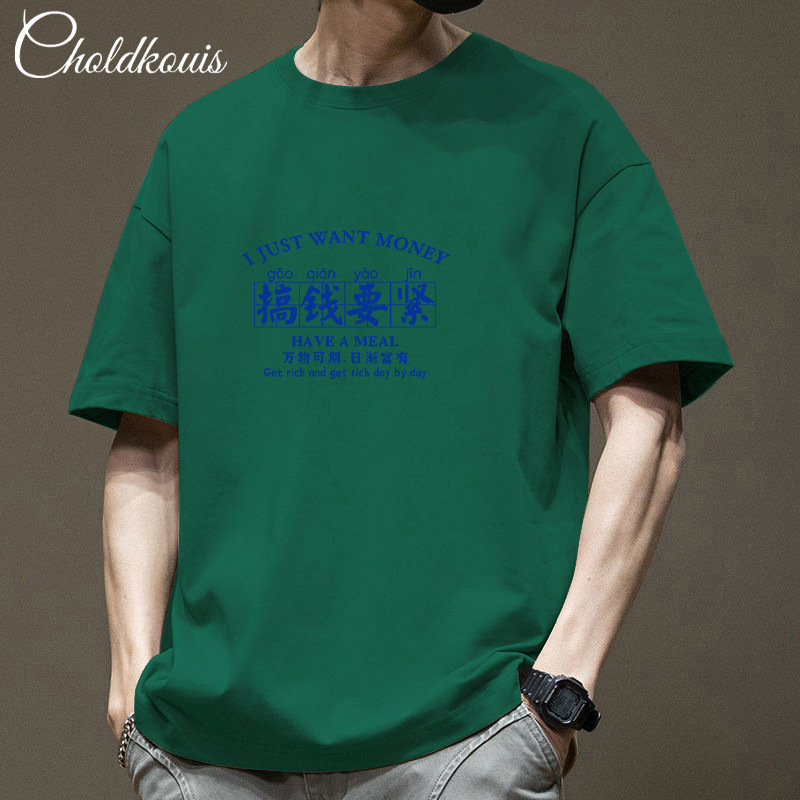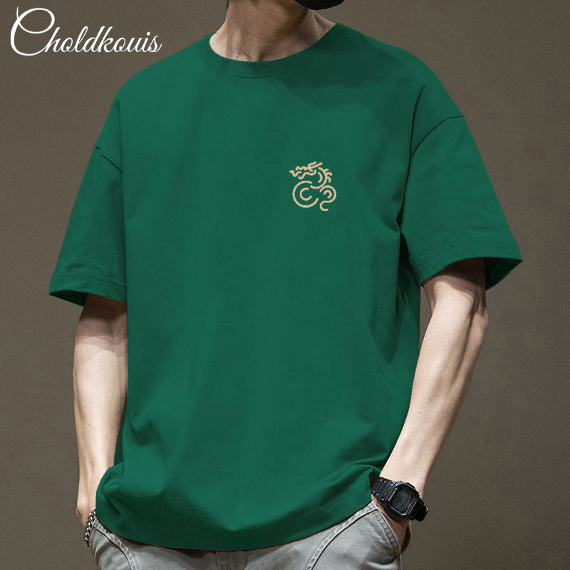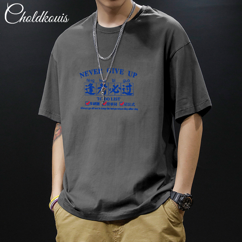 潮牌重ポンド純綿半袖tシャツ男性夏の新ファッションゆるい半袖男性用丸襟上着