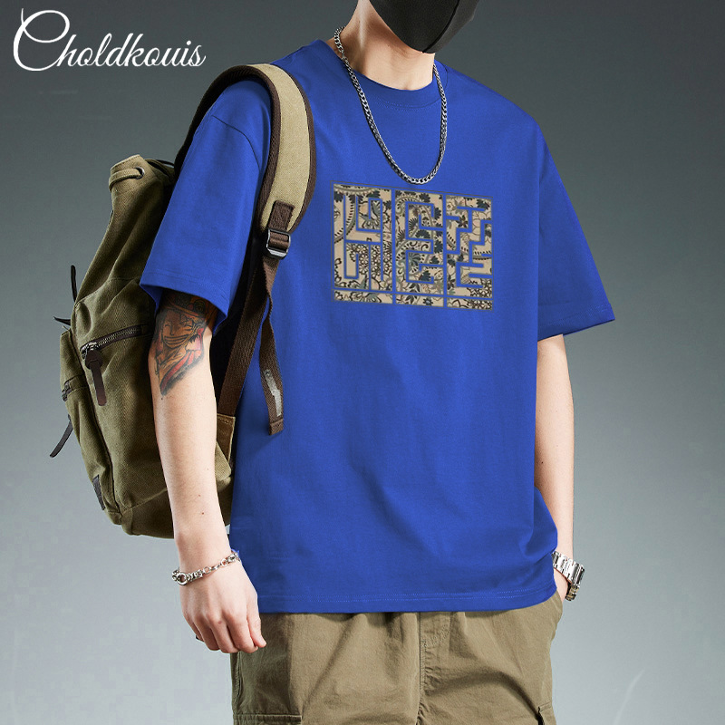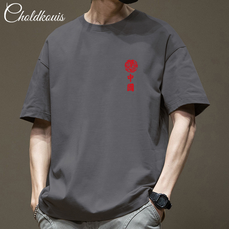 メンズ重ポンドtシャツ男性純綿半袖夏丸襟アメリカ新作ファッション高級半袖ゆったり