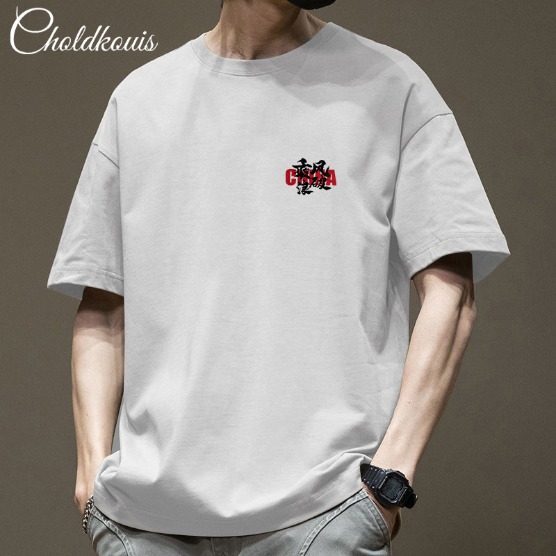 重いポンドの純綿の男性のtシャツの夏の日本のシンプルな青年のゆったりしたファッションのブランドの半袖のカジュアルな百合の上着のinsのファッション