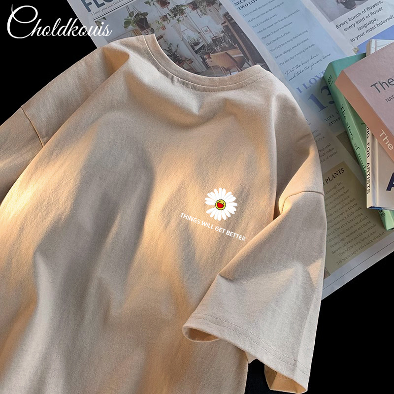 日系プリント半袖tシャツ男子ins潮牌上服2022夏ファッションゆるい半袖百合tシャツ