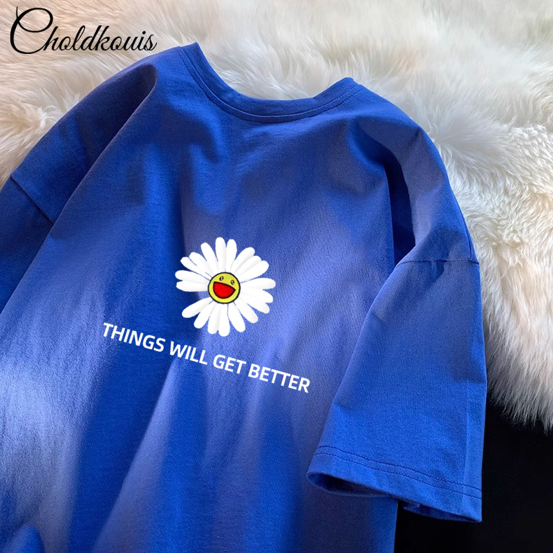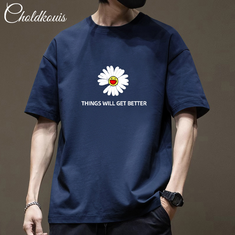 日系プリント半袖tシャツ男子ins潮牌上服2024夏ファッションゆるい半袖百合tシャツ