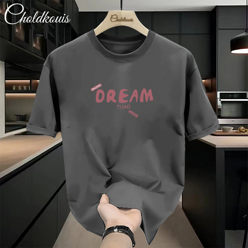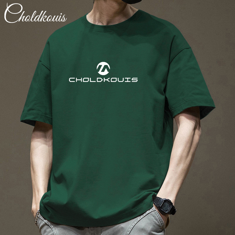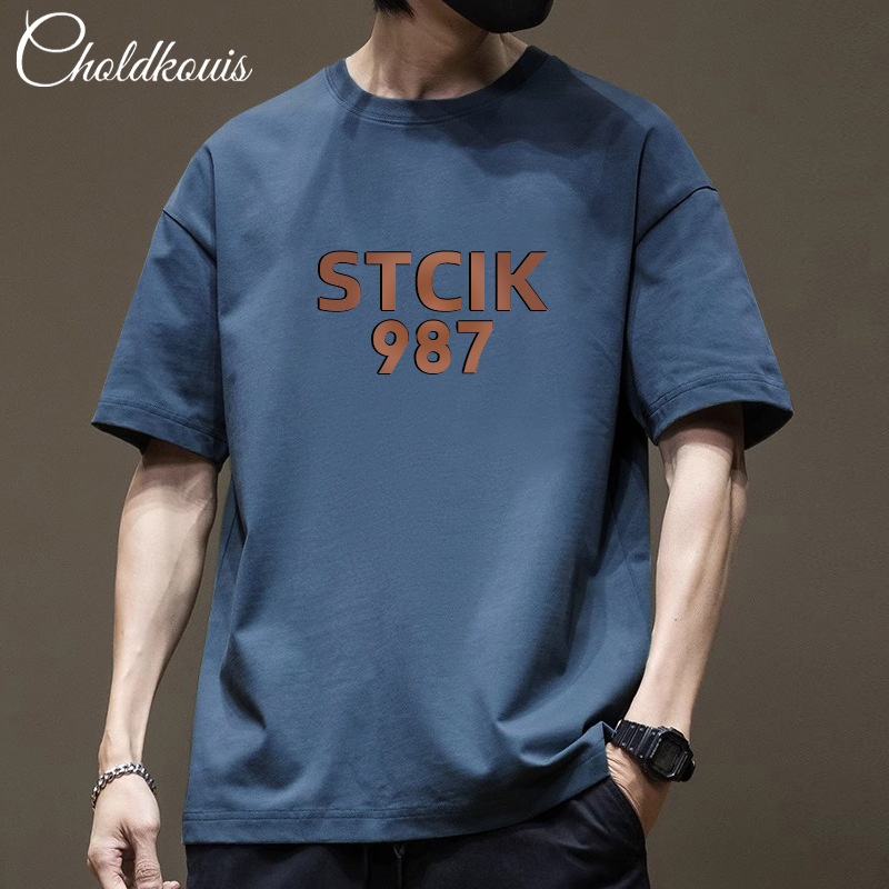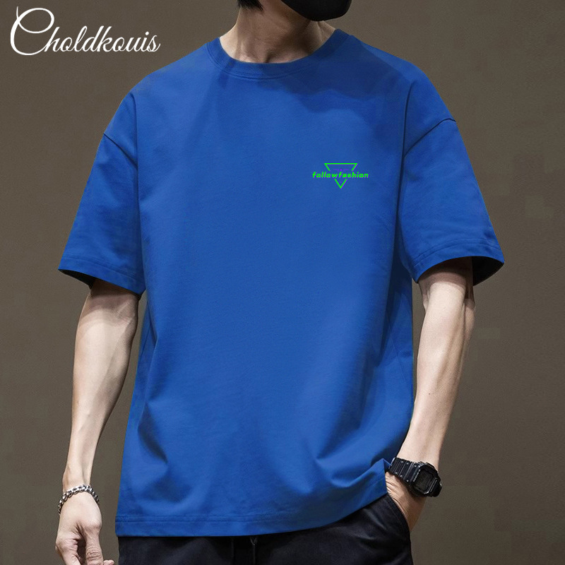 純綿柄ゆったり半袖プリントトレンドブランドTシャツ新作ラウンドネックアメリカンヘビーウェイトメンズショルダー新デザイン