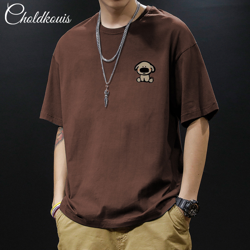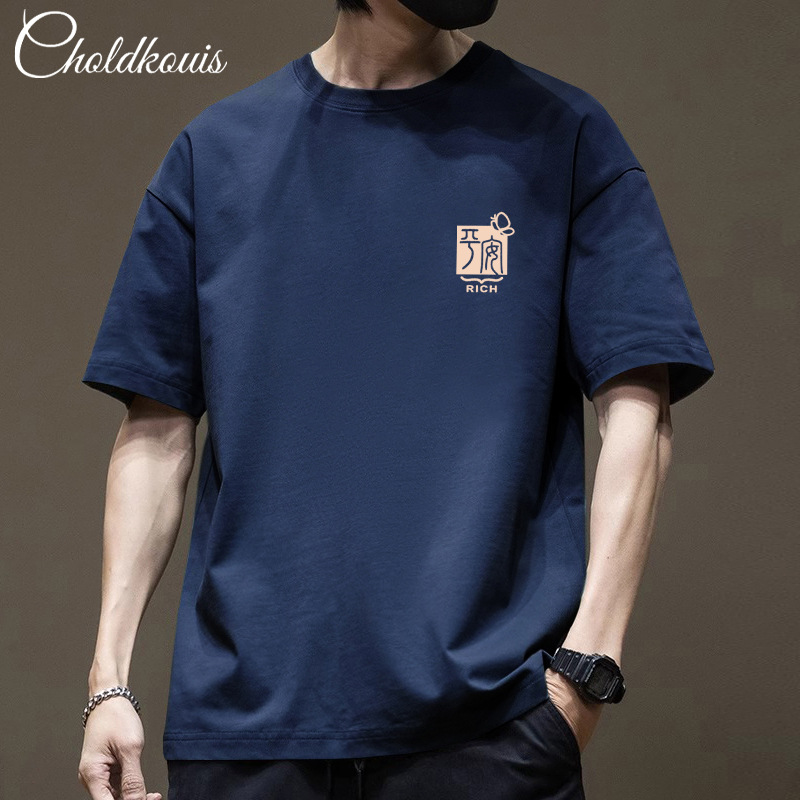 夏の潮牌日系文芸男半袖重ポンド純綿ゆるいtシャツ香港風insトレンドシャツ新製品