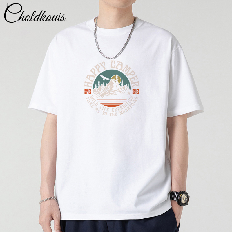 日系夏丸襟tシャツ男性半袖上服潮牌ゆるい半袖トレンドプリント綿tシャツ