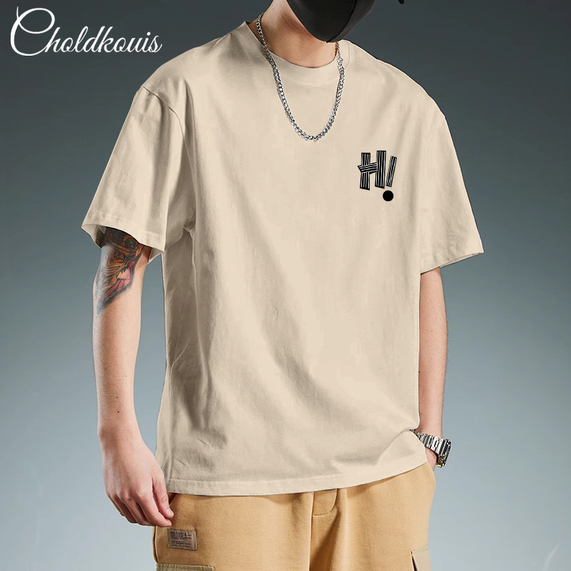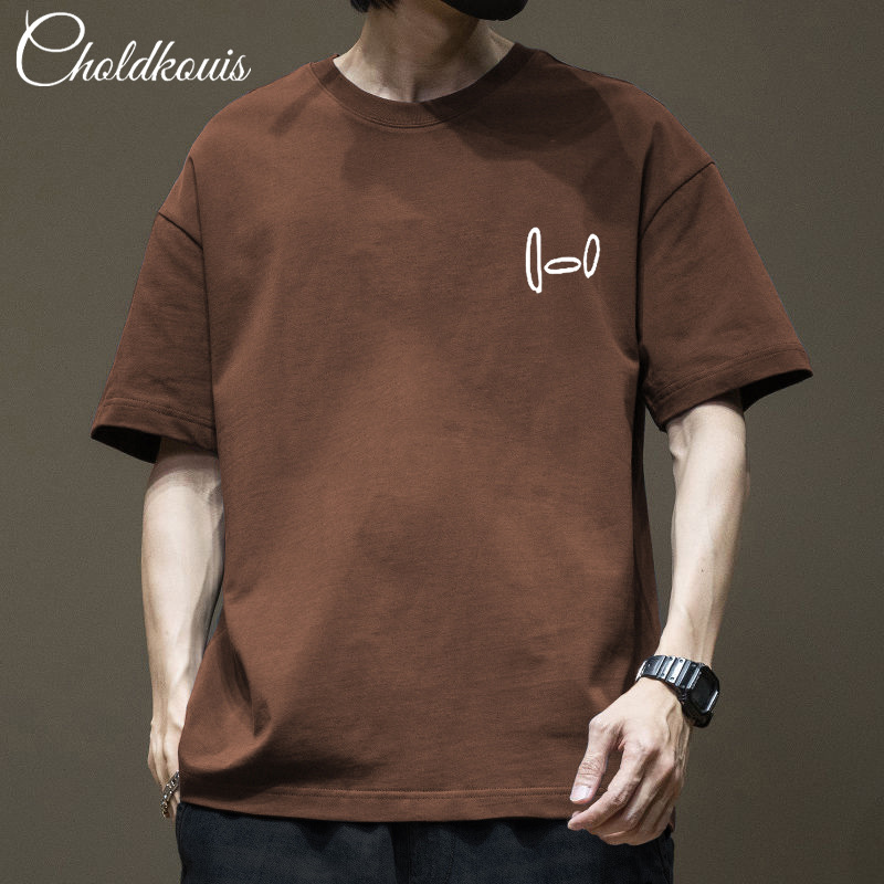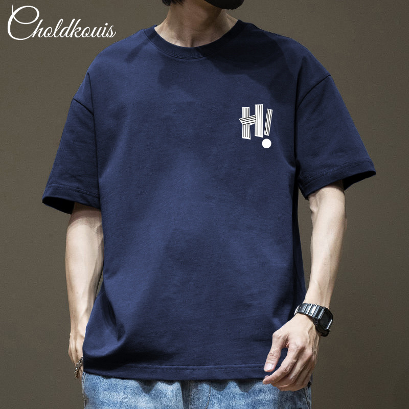 潮牌重ポンド純綿半袖tシャツ男性夏の新ファッションゆるい半袖男性用丸襟上着