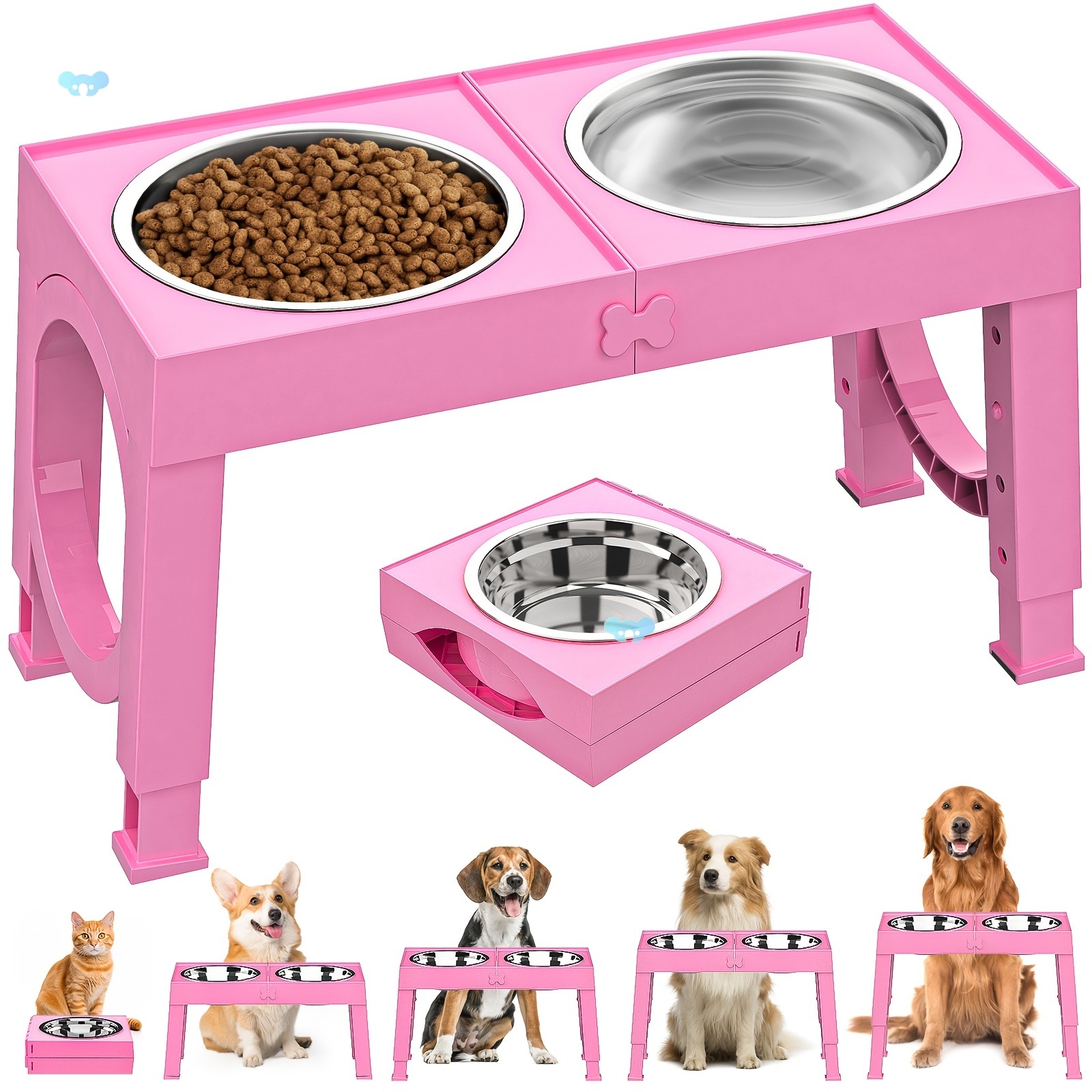 高さのある犬用ボウル 折りたたみ式の高さのある犬用ボウルスタンド 2クロスボーダー付き