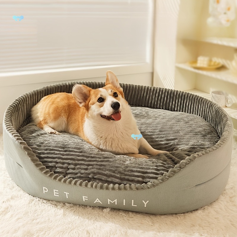 大型冬用暖かい犬用ベッド、豪華なグレーのフリース、柔らかいグレー