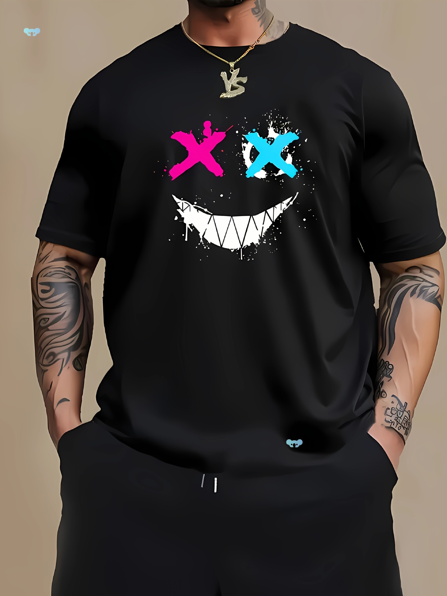 コットン Tシャツ メンズ パーソナリティ ハッピーフェイス パターンTシャツ