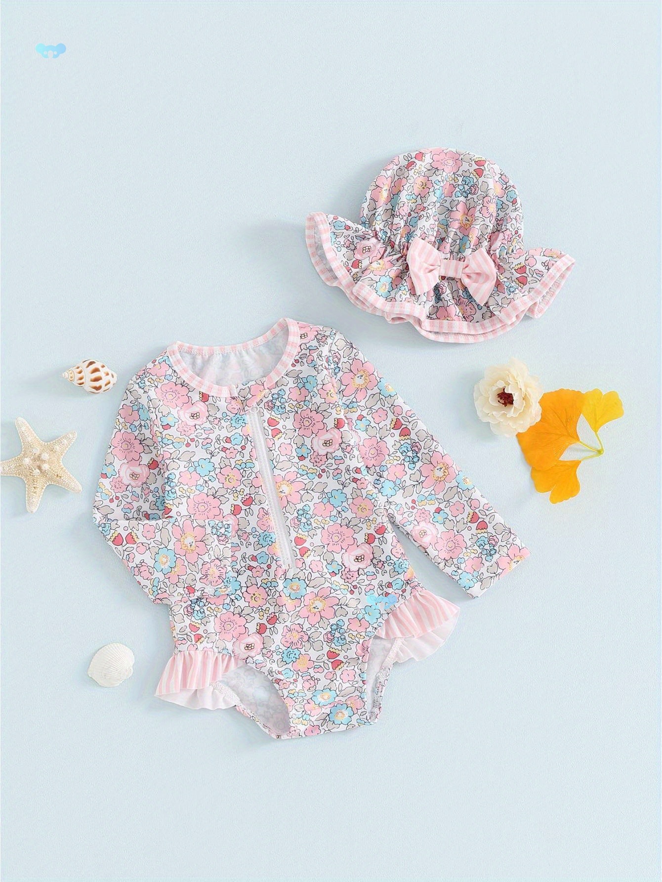 1pc 0 3 歳女の子ラッシュガード水着長袖花柄
