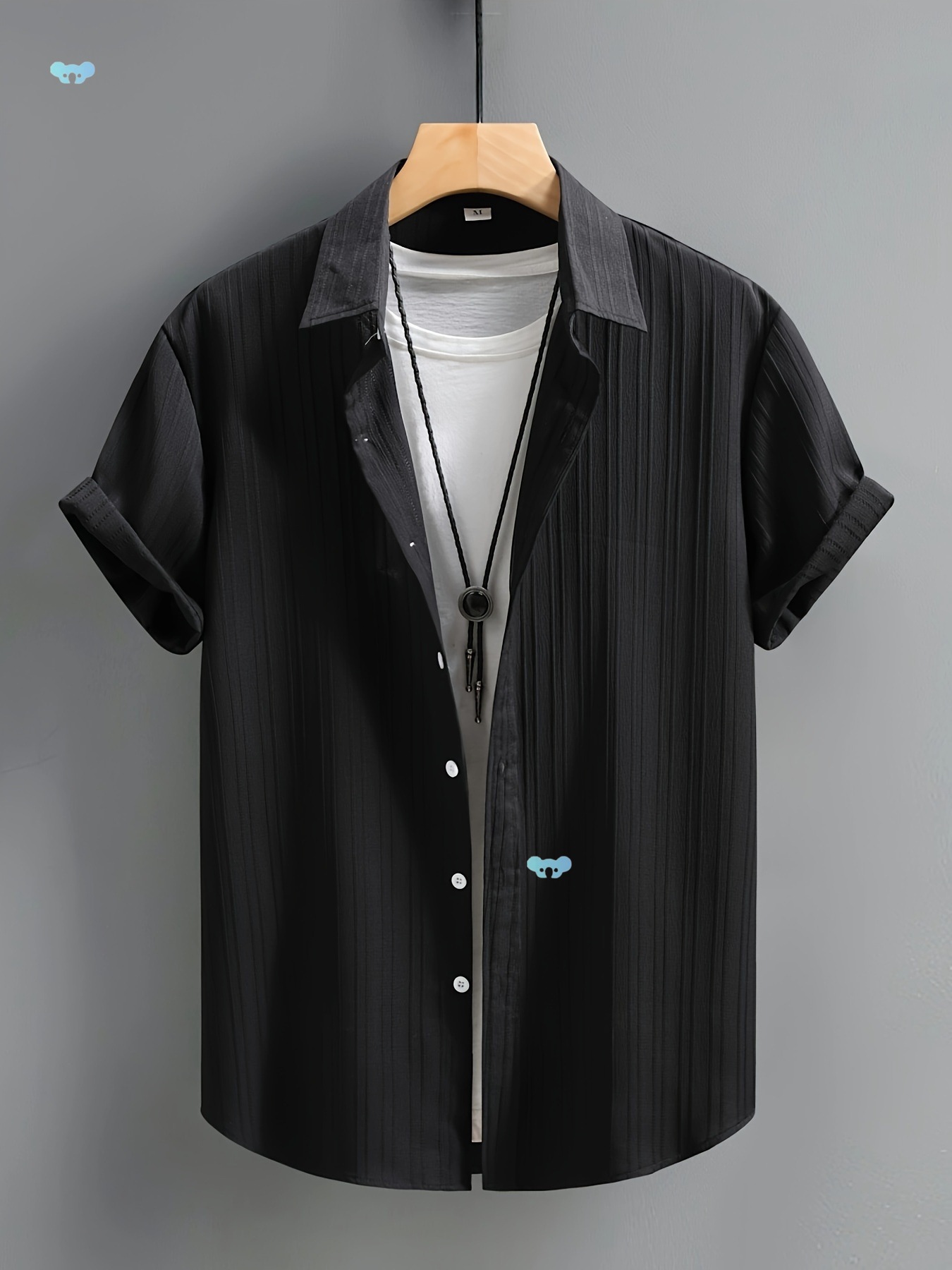 メンズカジュアル半袖ボタンアップシャツブラック縦型クロスボーダー
