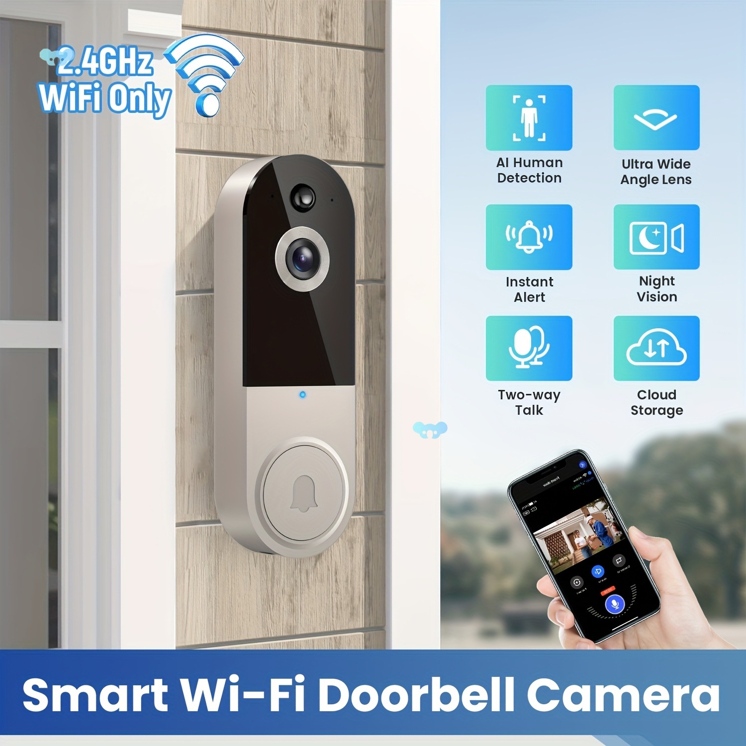 2.4G Wi-Fi 1080p ワイヤー式ビデオドアベルカメラ(呼び鈴付き)