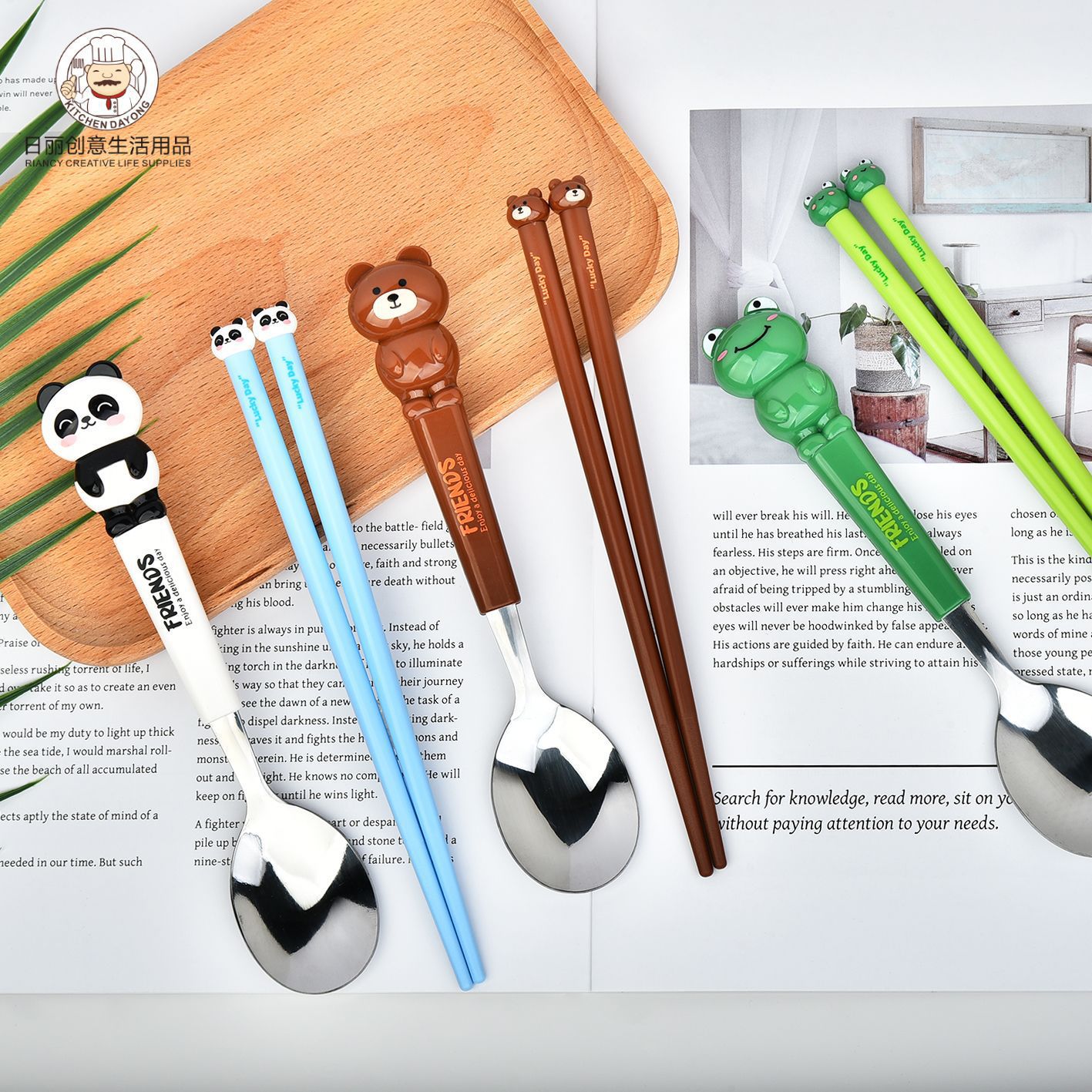 漫画ステンレス食器スプーン卸売子供フォークスプーンセット屋外ポータブルベアー食器工場外国貿易