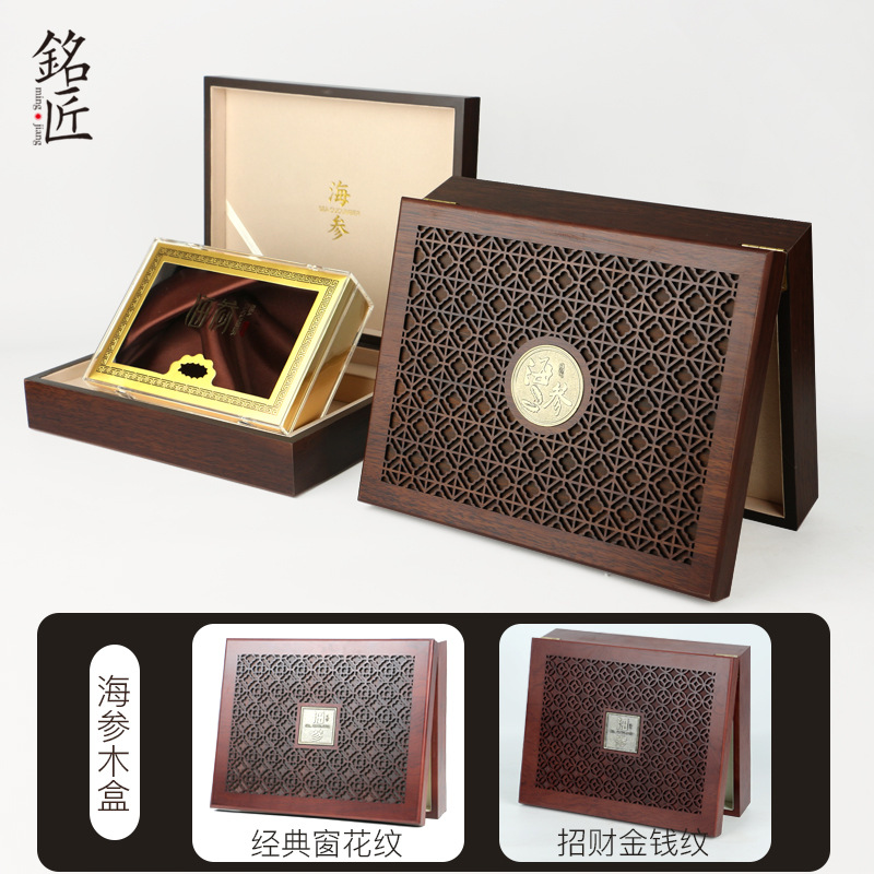 新しいナマコ包装木箱 0.5kg パック半斤彫刻窓ナマコ木箱ライトドライナマコギフト空箱