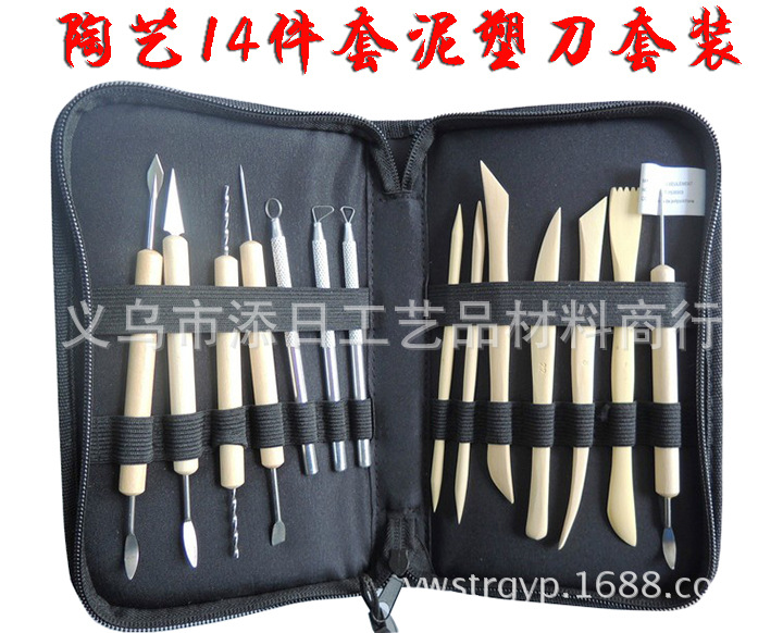 14件套装陶艺泥塑油泥雕塑雕刻刀面塑软陶粘土造型工具组合套装