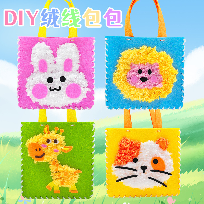 子供の手縫いの楽しい不織布のアイデアの益智の漫画はおもちゃのぬいぐるみのハンドバッグの材料の包みを縫います。
