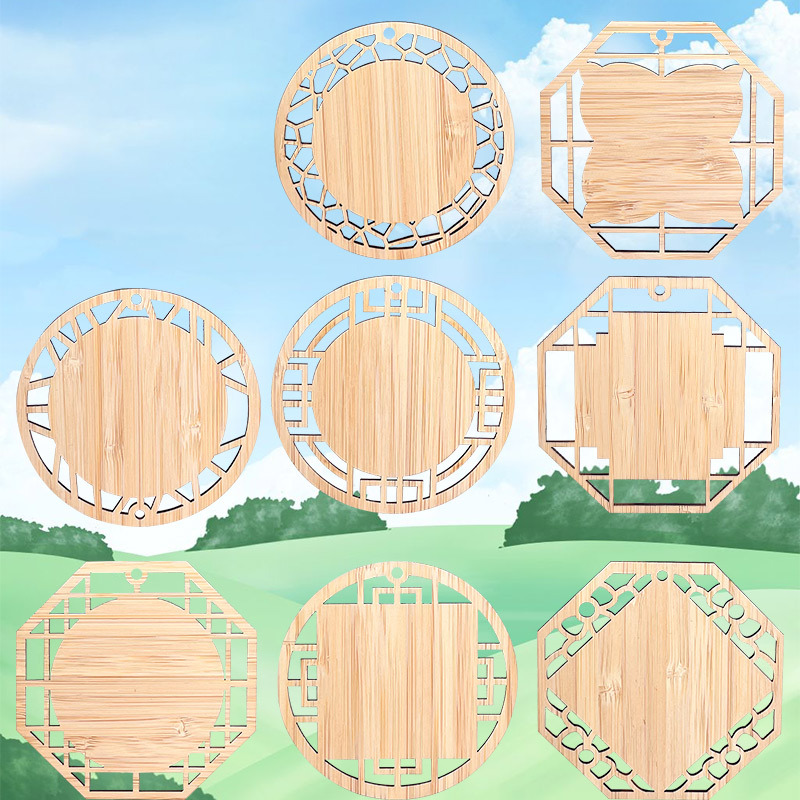 古風の透かし彫りの竹のしおりは糸のエナメルの竹の底板の材料の創意の文を絞めて手作りのDIY竹の切れのペンダントのコースターを作ります。