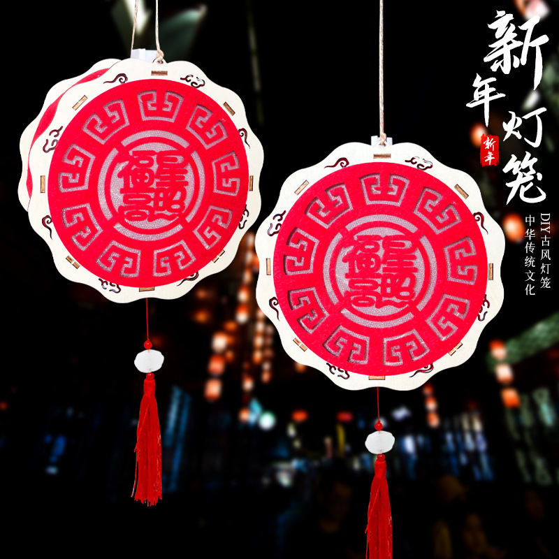 木製手作りDIY新年お祝い発光提灯飾り草花宮灯露店玩具夜市卸売り旧正月