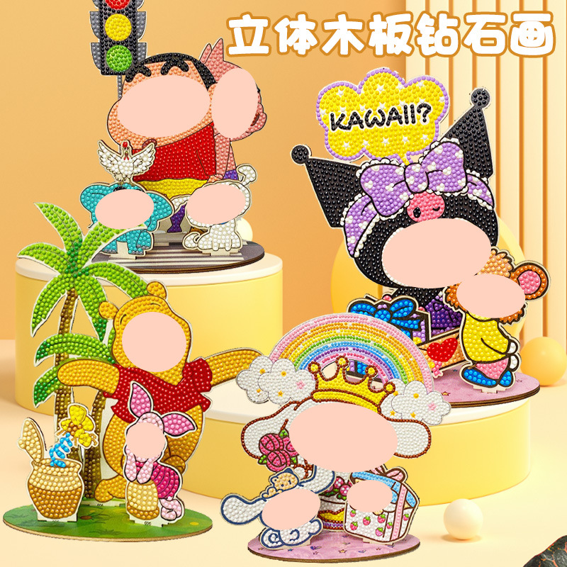 新しいモデルの麗鴎の漫画のダイヤモンドはブランドの子供の3dの漫画の手作りの立体の粘着するドリルを描いてデスクトップの置物の卸売りを描きます。