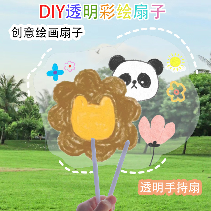 空白透明扇子絵画扇子幼稚園手作りdiy児童落書き彩色プラスチック円扇彩色絵