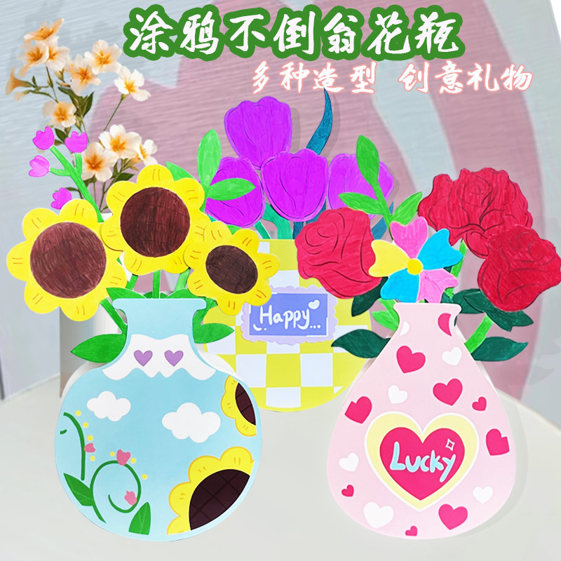 幼稚園児趣味DIY落書き紙花瓶児童知育絵画玩具漫画花瓶材料バッグ