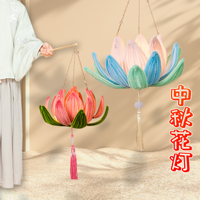 中秋節diyツイストスティックは発光ハスの花灯蓮の花灯の材料を持って花灯を包んで友達にプレゼントします。