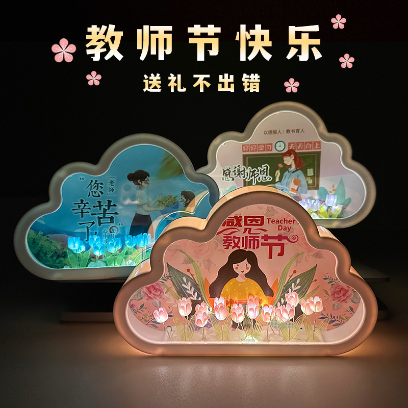 教師の日の創意プレゼントチューリップ雲の小夜灯のデスクトップの発光置物DIY花の鏡の雰囲気灯