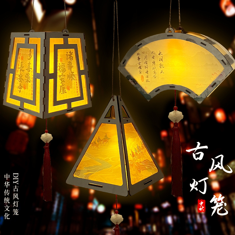 中秋節の新型古風提灯発光手提げ児童DIY木製提灯材料包夜市出店卸売り