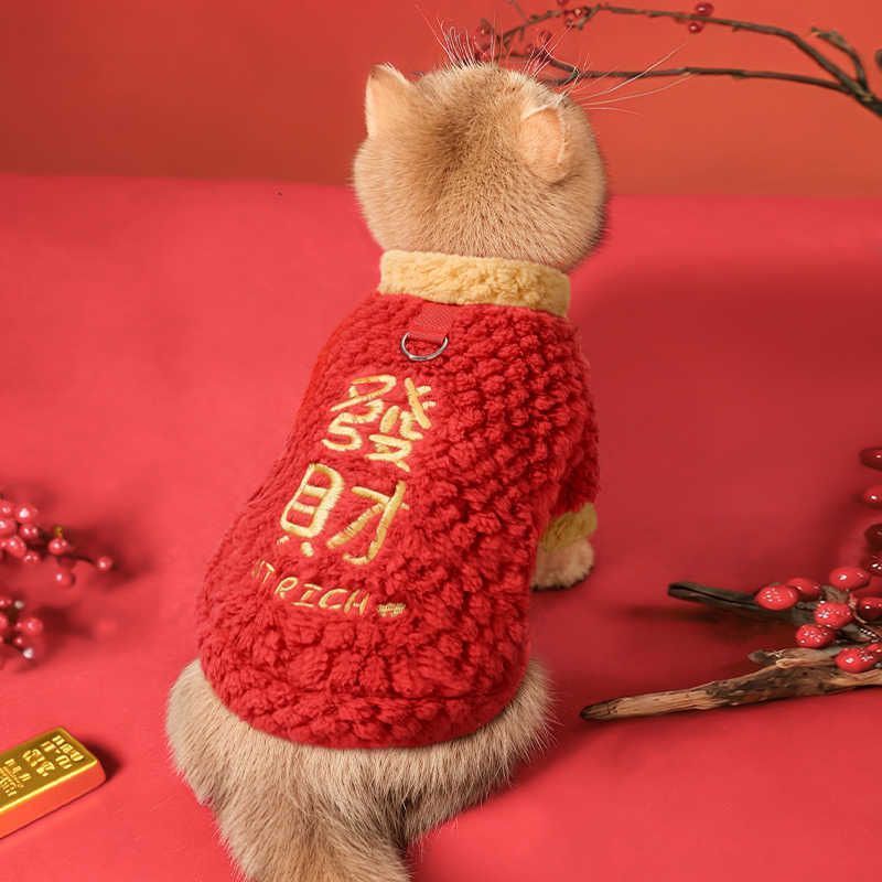 新年のお祝い猫ペット服冬のベルベットは保温犬服布を厚くした