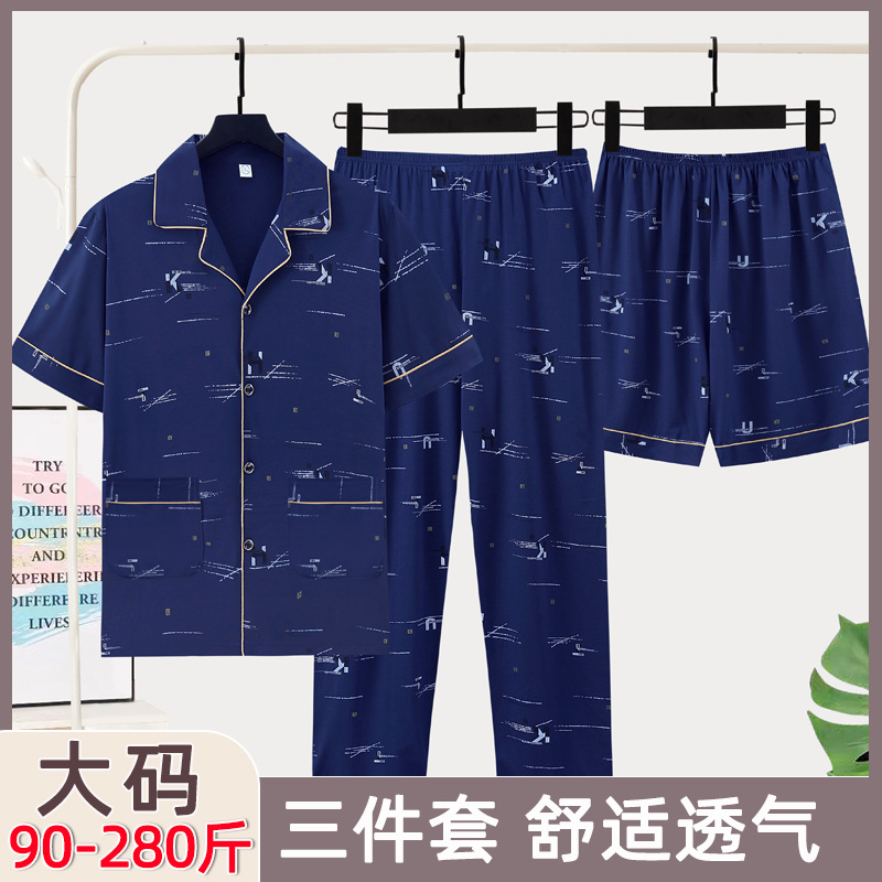 純綿パジャマメンズ夏半袖ズボンスリーピースプラスファットプラスサイズメンズ薄型ホームウェアセット