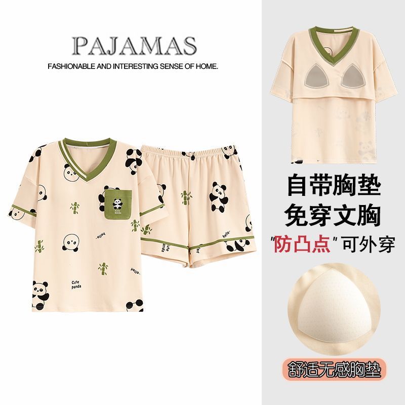 女性用パジャマ夏の純綿半袖Vネック純綿ショーツミルクベアインスタイルホームウェアセット